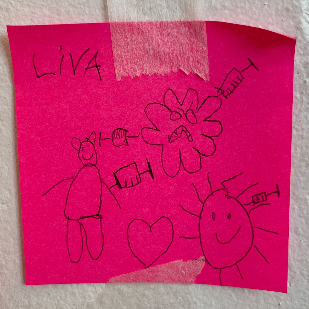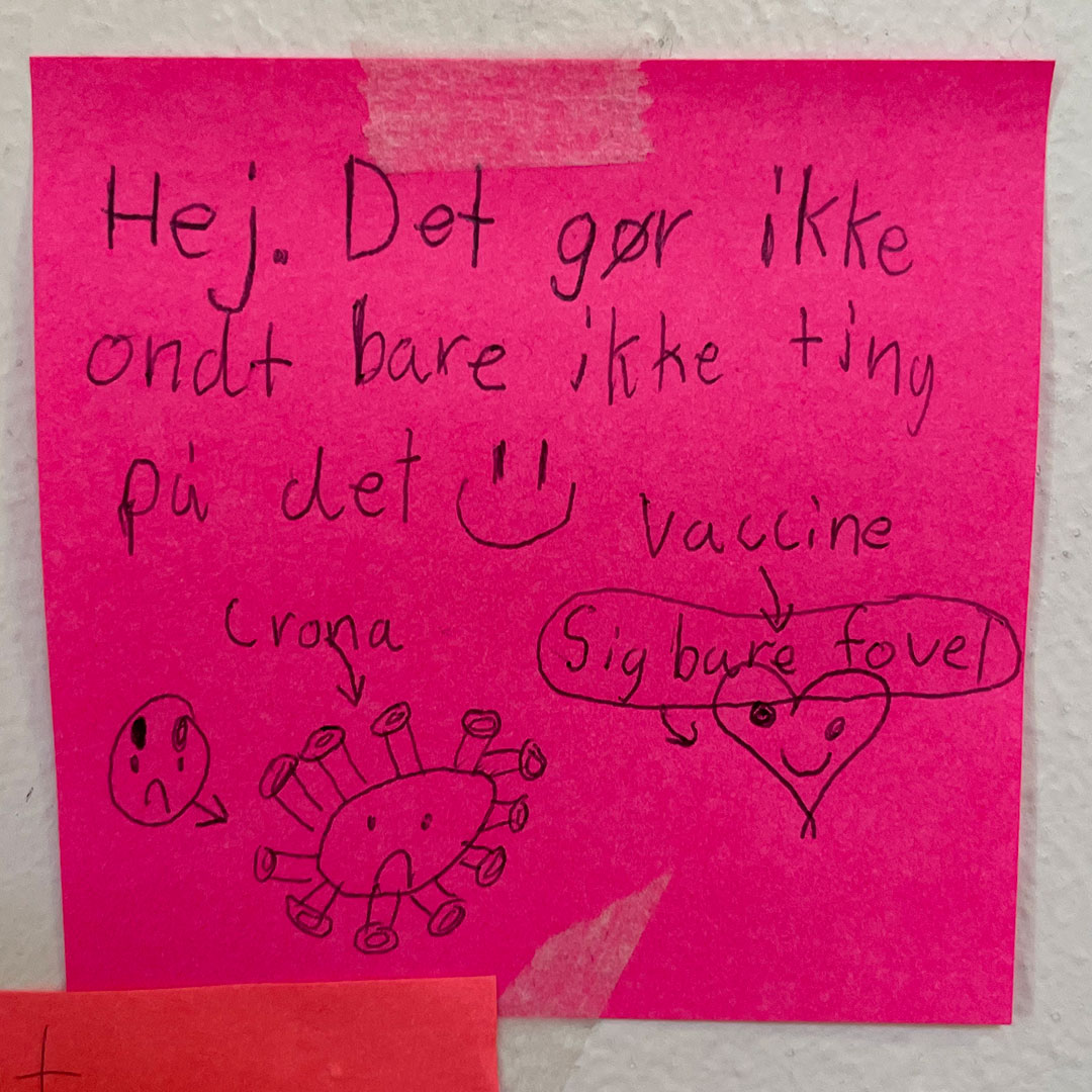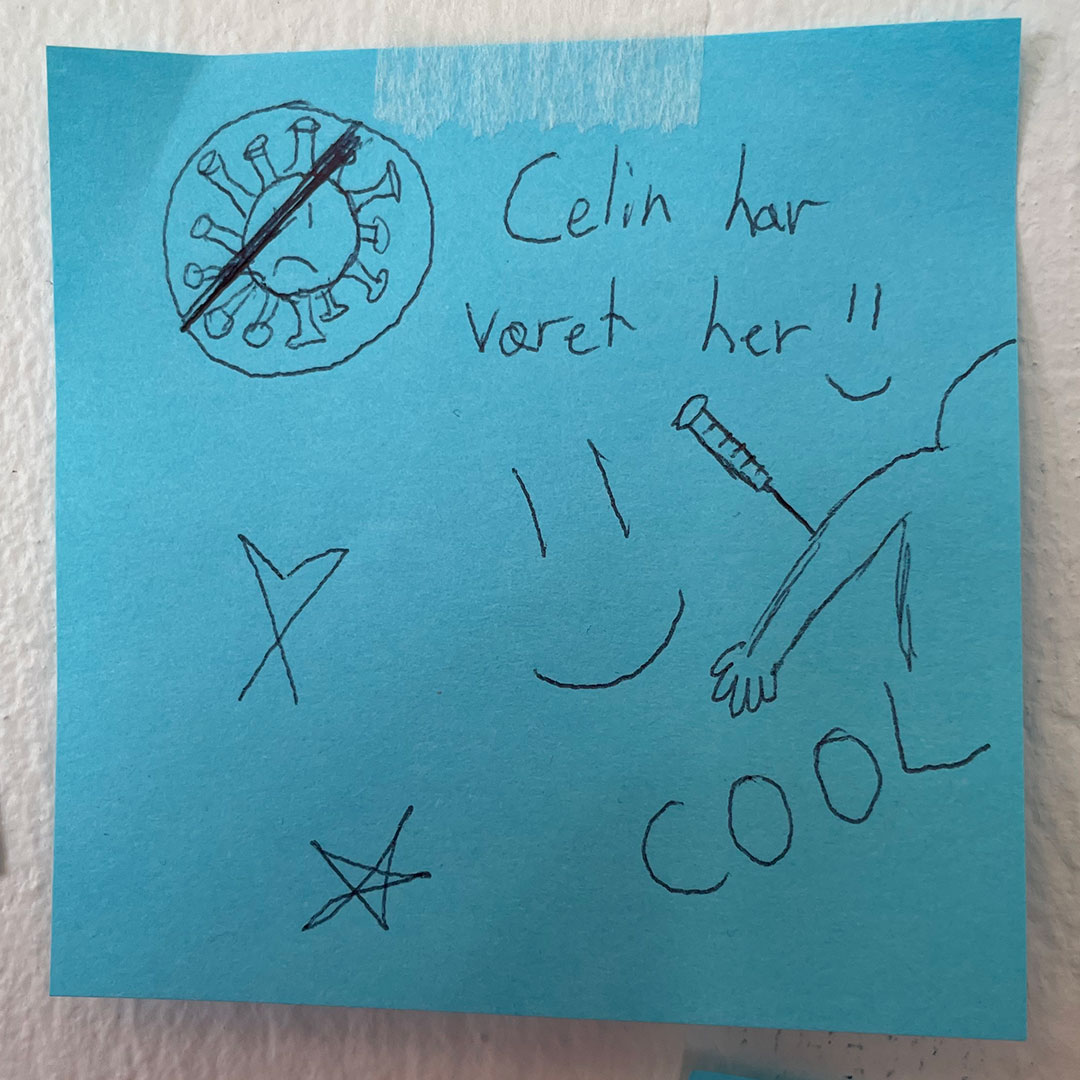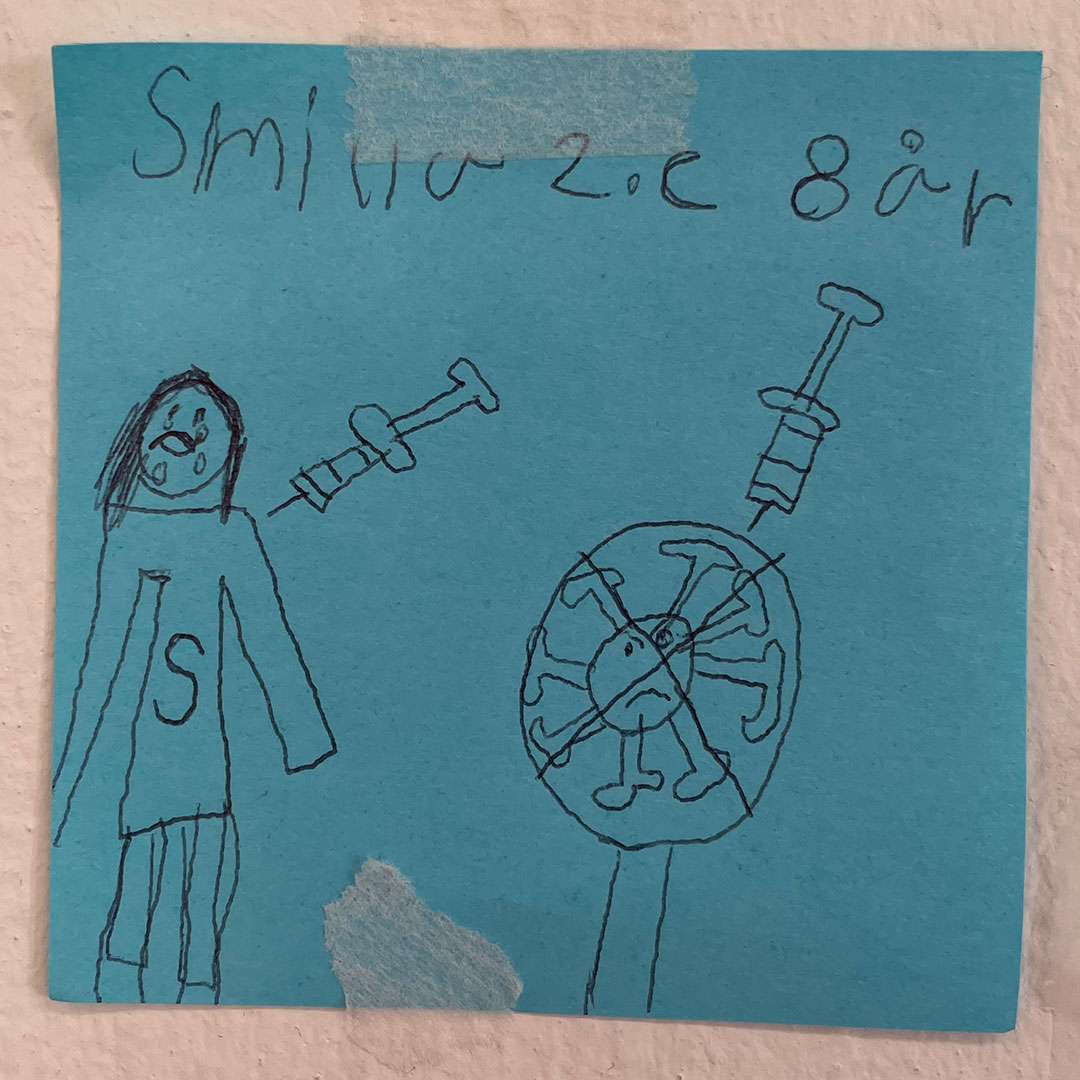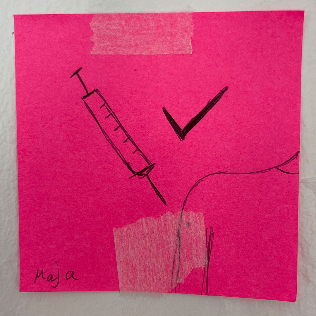 In the winter of 2021/2022 I did a stretch with covid vaccination, partly to experience it and partly to help. A good number of parents couldn’t get their children to relax before the shot and so we had the kids draw on little stickies – it helped. This is just a tiny part of the thousands and thousands of drawings.