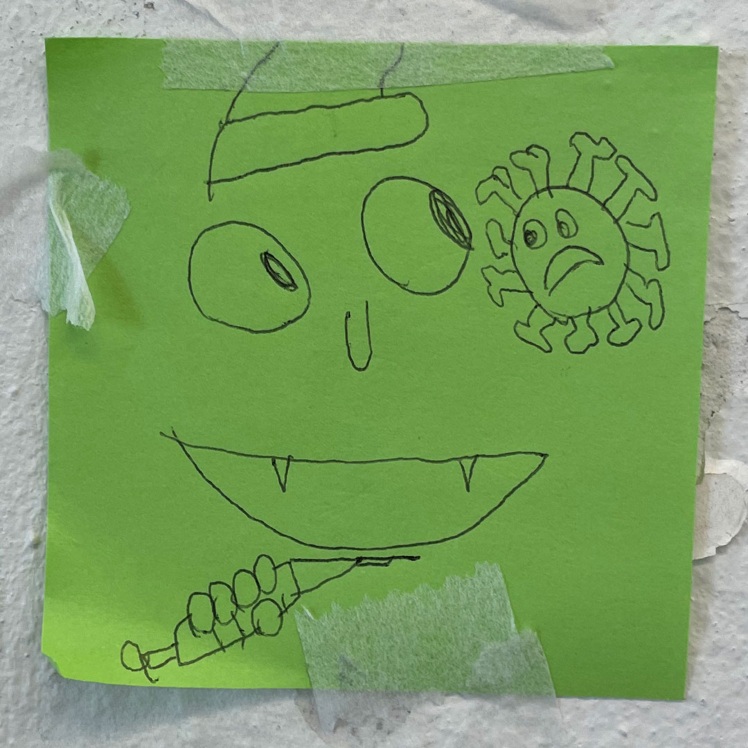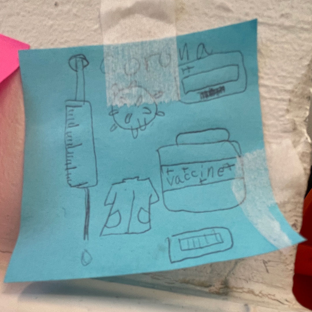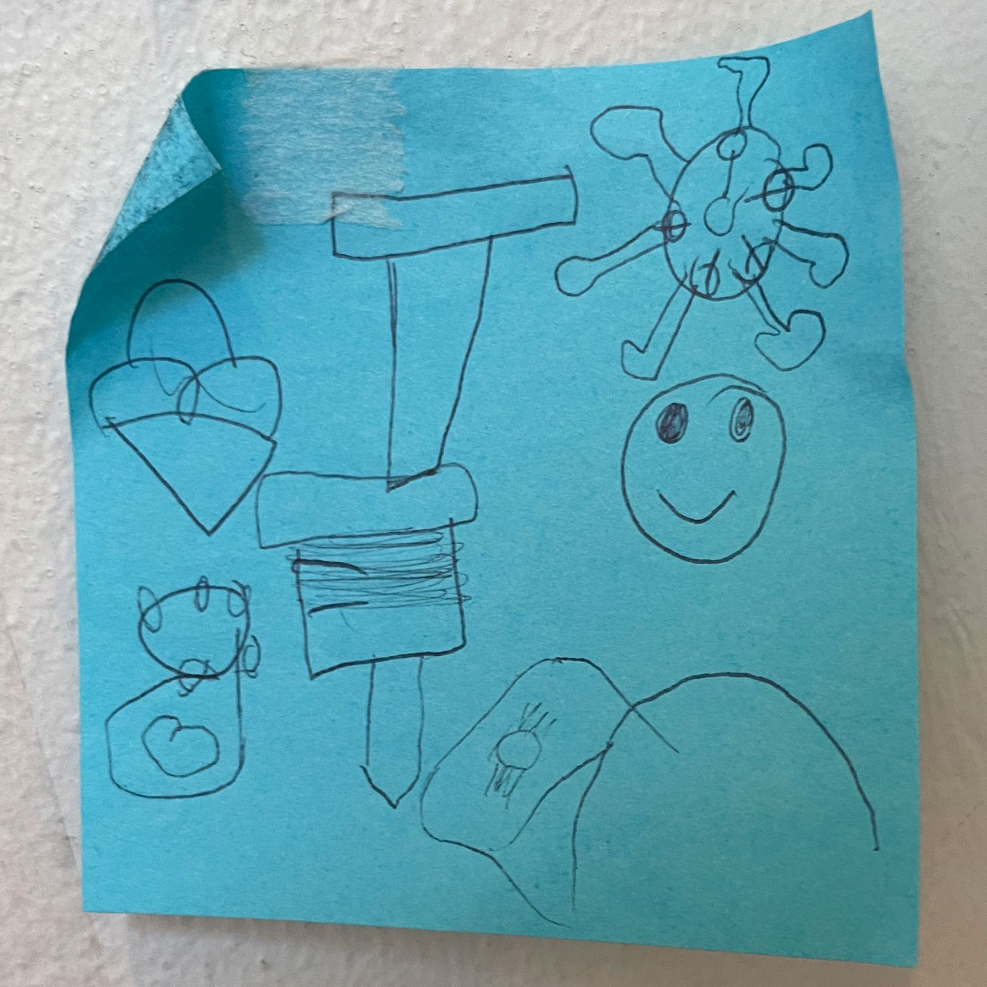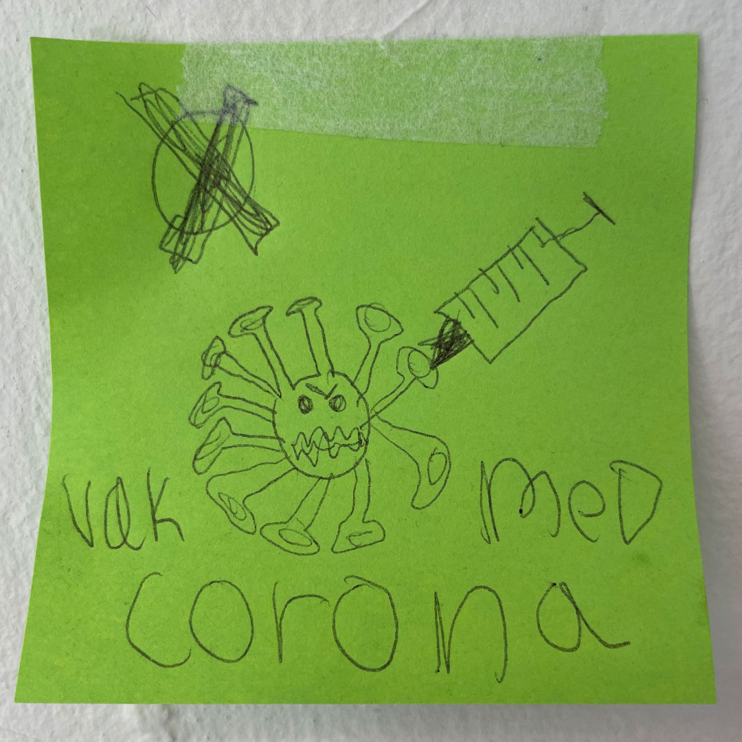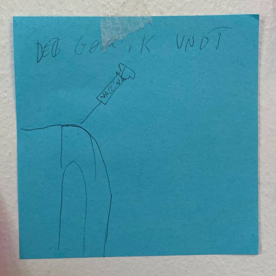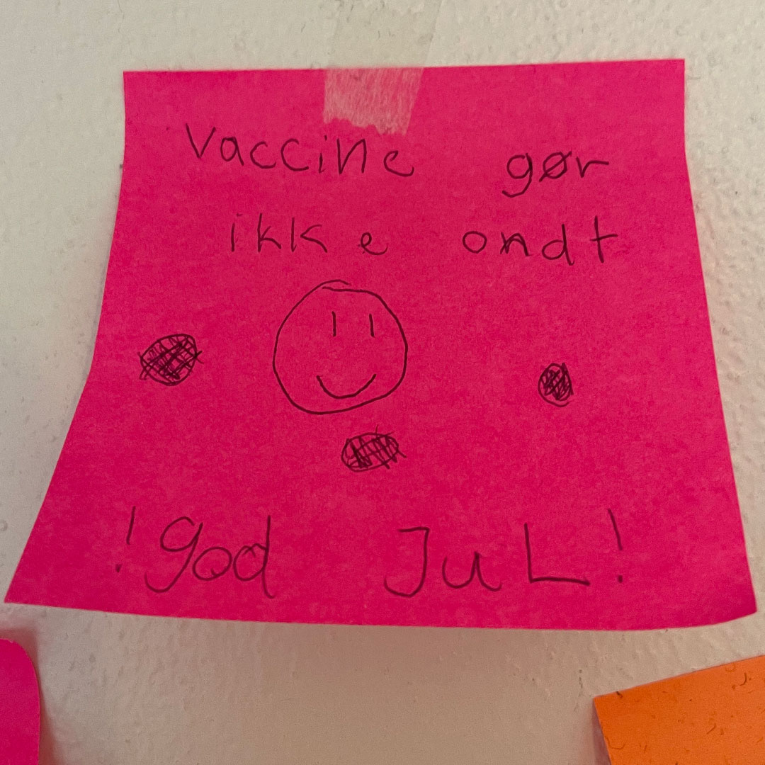 In the winter of 2021/2022 I did a stretch with covid vaccination, partly to experience it and partly to help. A good number of parents couldn’t get their children to relax before the shot and so we had the kids draw on little stickies – it helped. This is just a tiny part of the thousands and thousands of drawings.