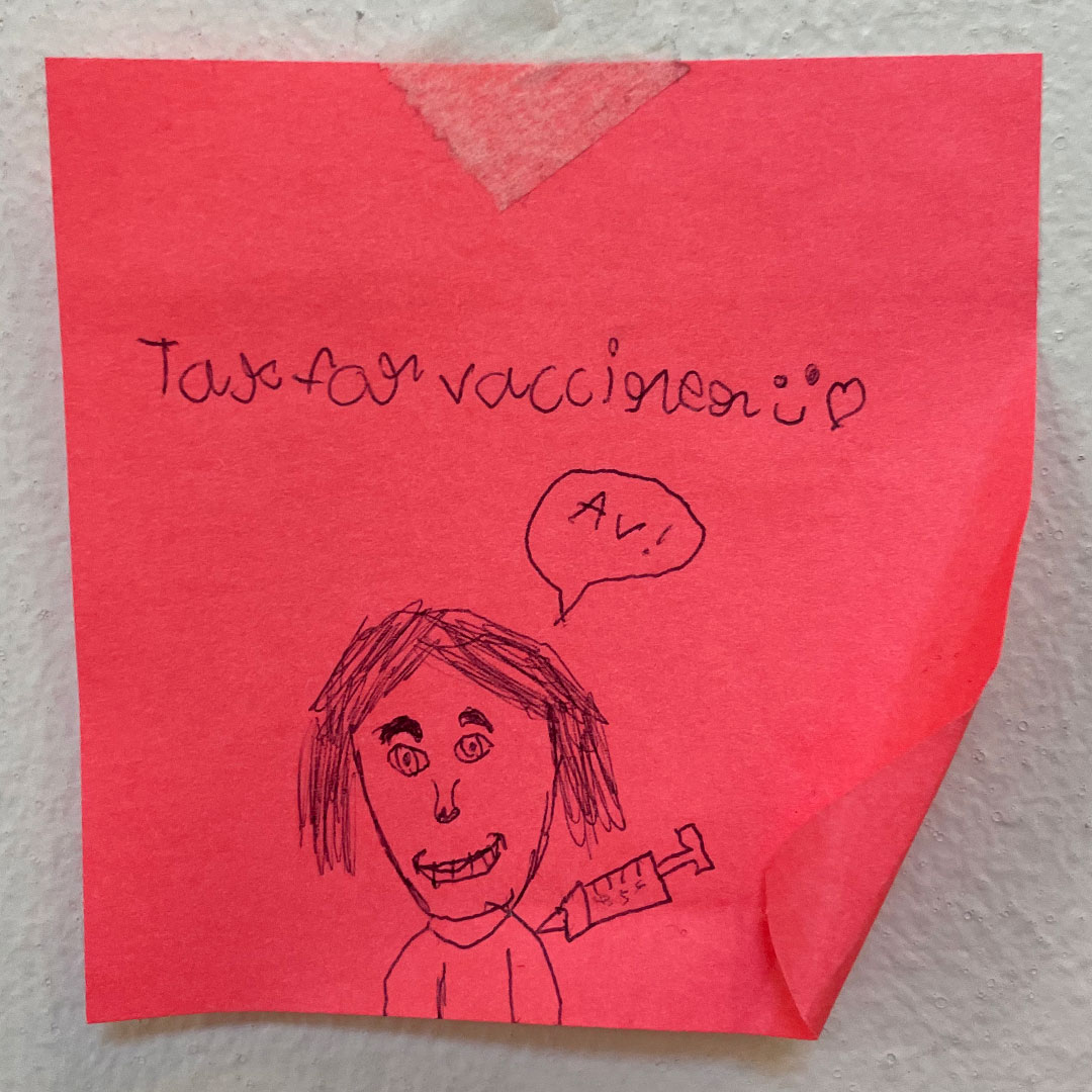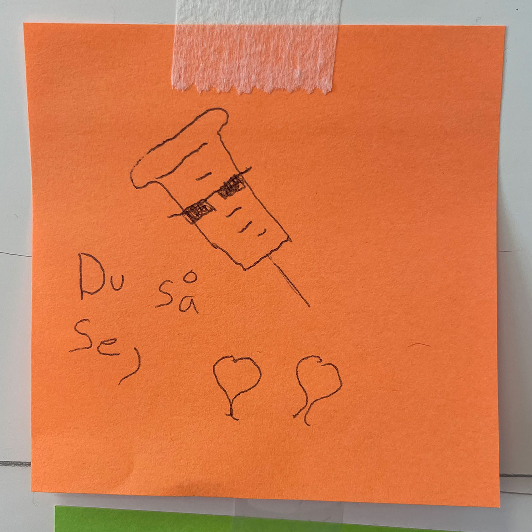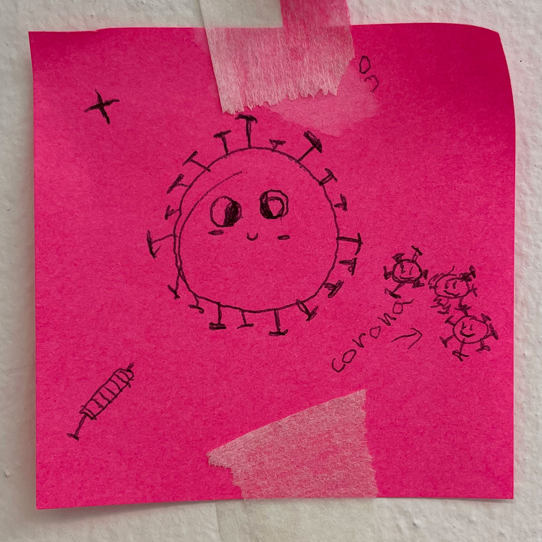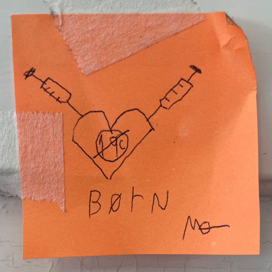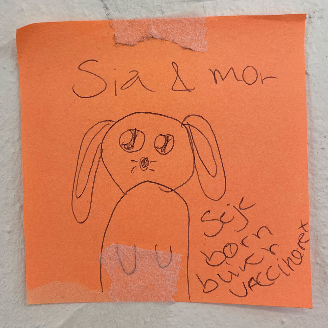 In the winter of 2021/2022 I did a stretch with covid vaccination, partly to experience it and partly to help. A good number of parents couldn’t get their children to relax before the shot and so we had the kids draw on little stickies – it helped. This is just a tiny part of the thousands and thousands of drawings.