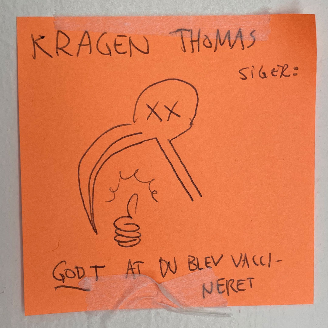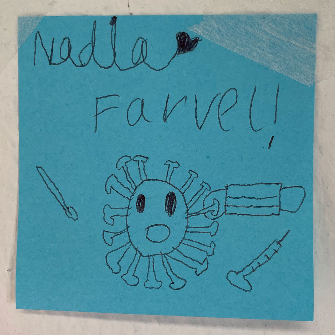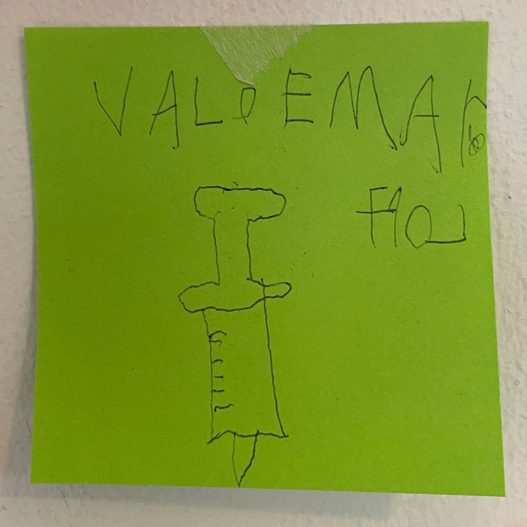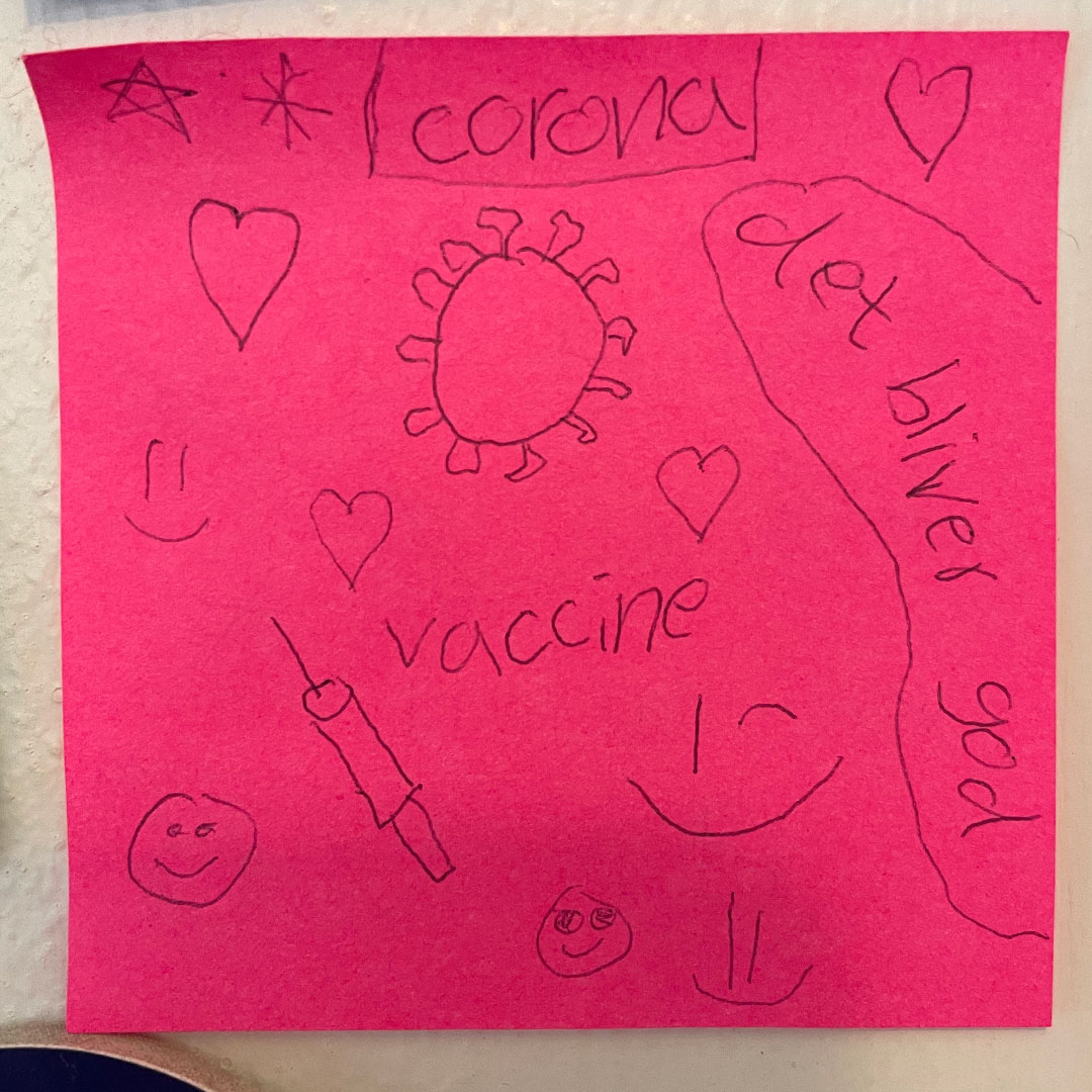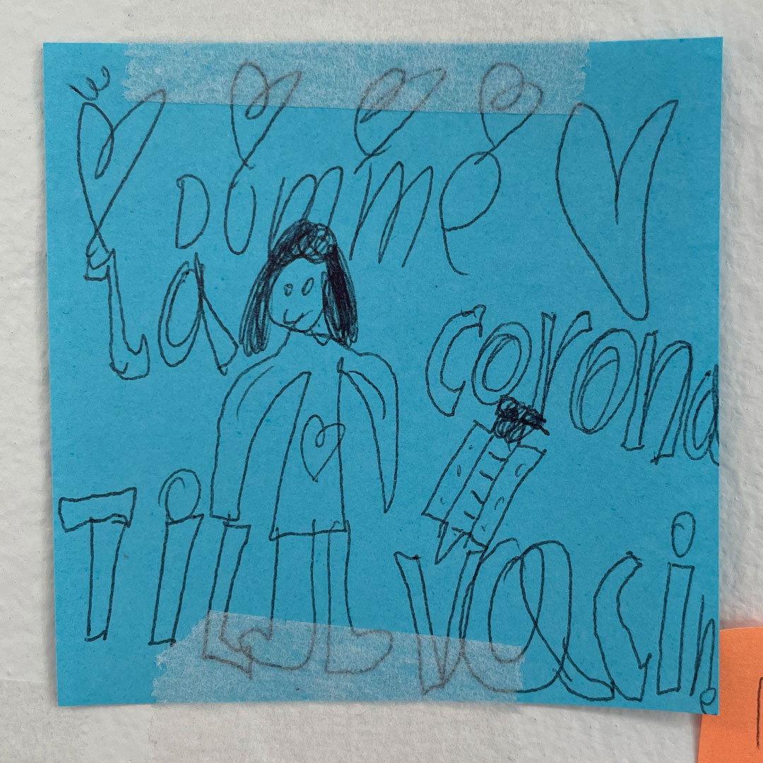 In the winter of 2021/2022 I did a stretch with covid vaccination, partly to experience it and partly to help. A good number of parents couldn’t get their children to relax before the shot and so we had the kids draw on little stickies – it helped. This is just a tiny part of the thousands and thousands of drawings.