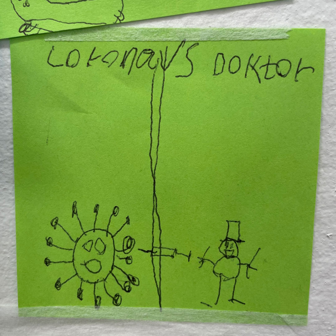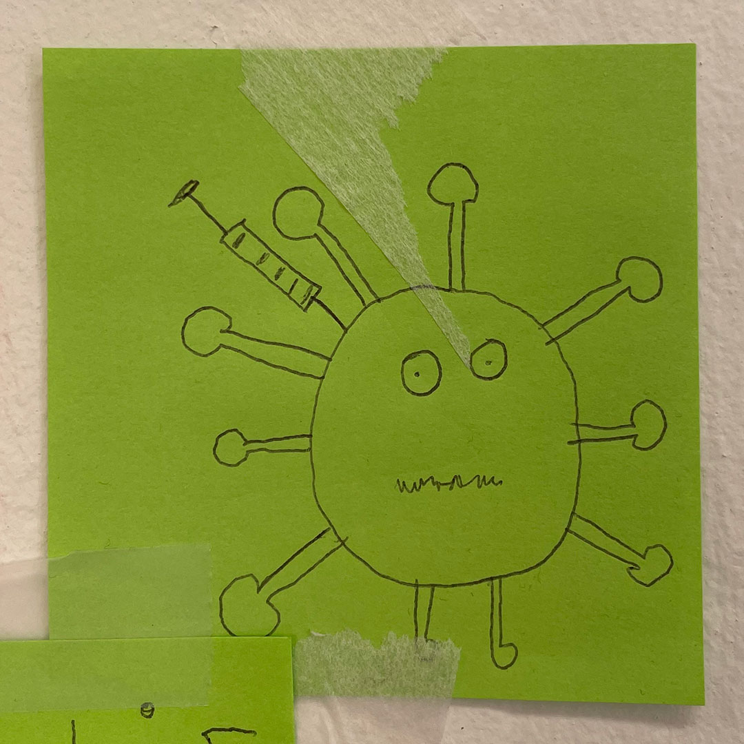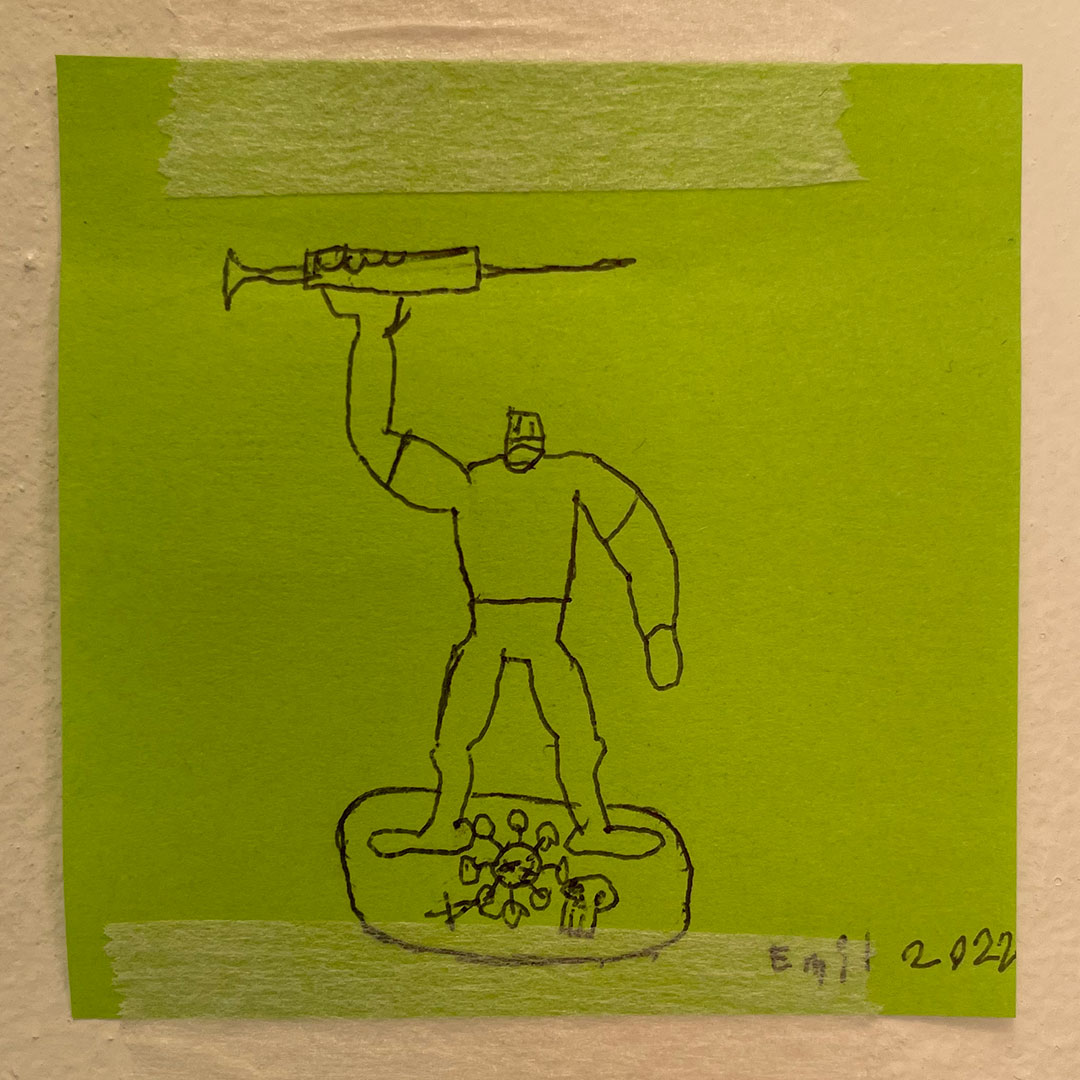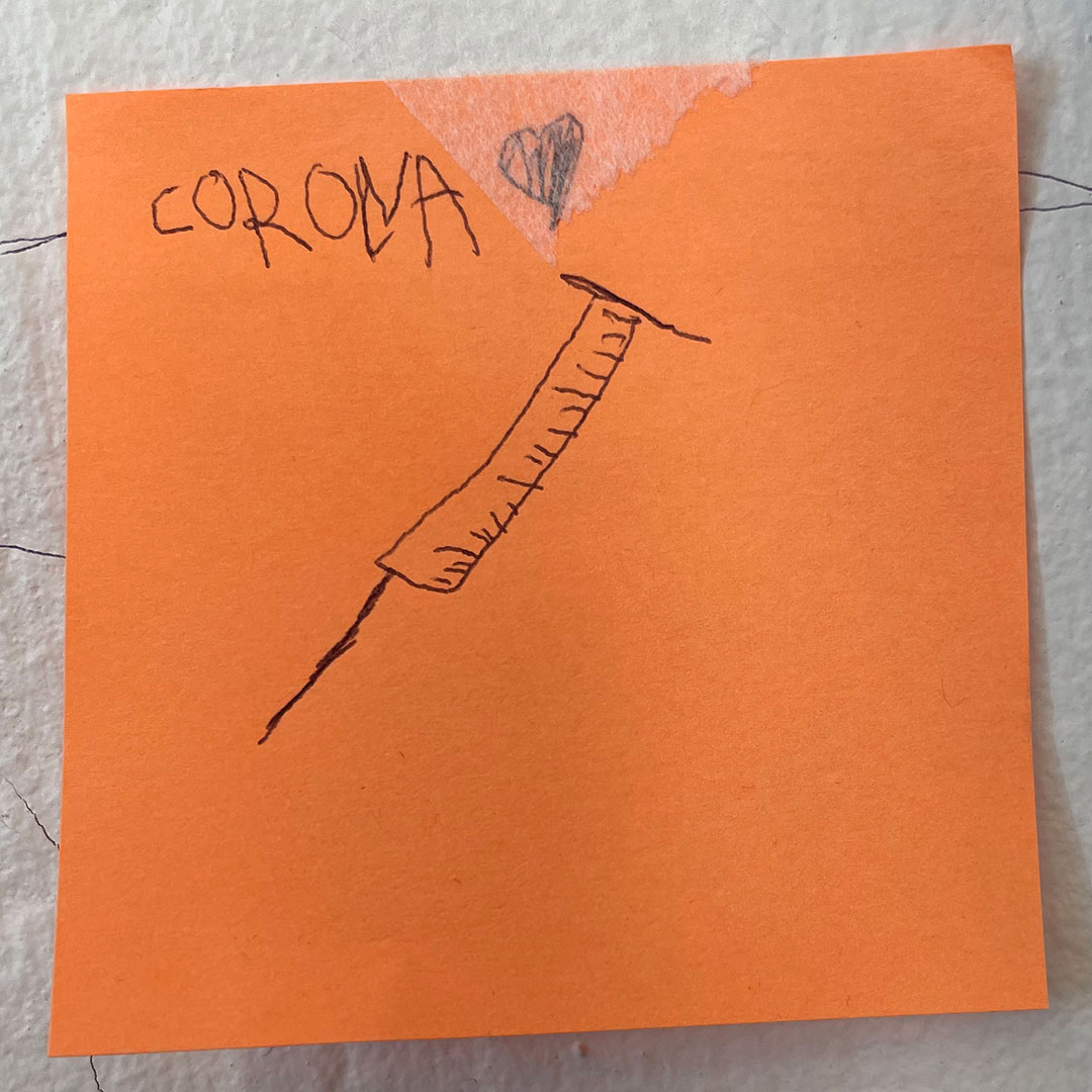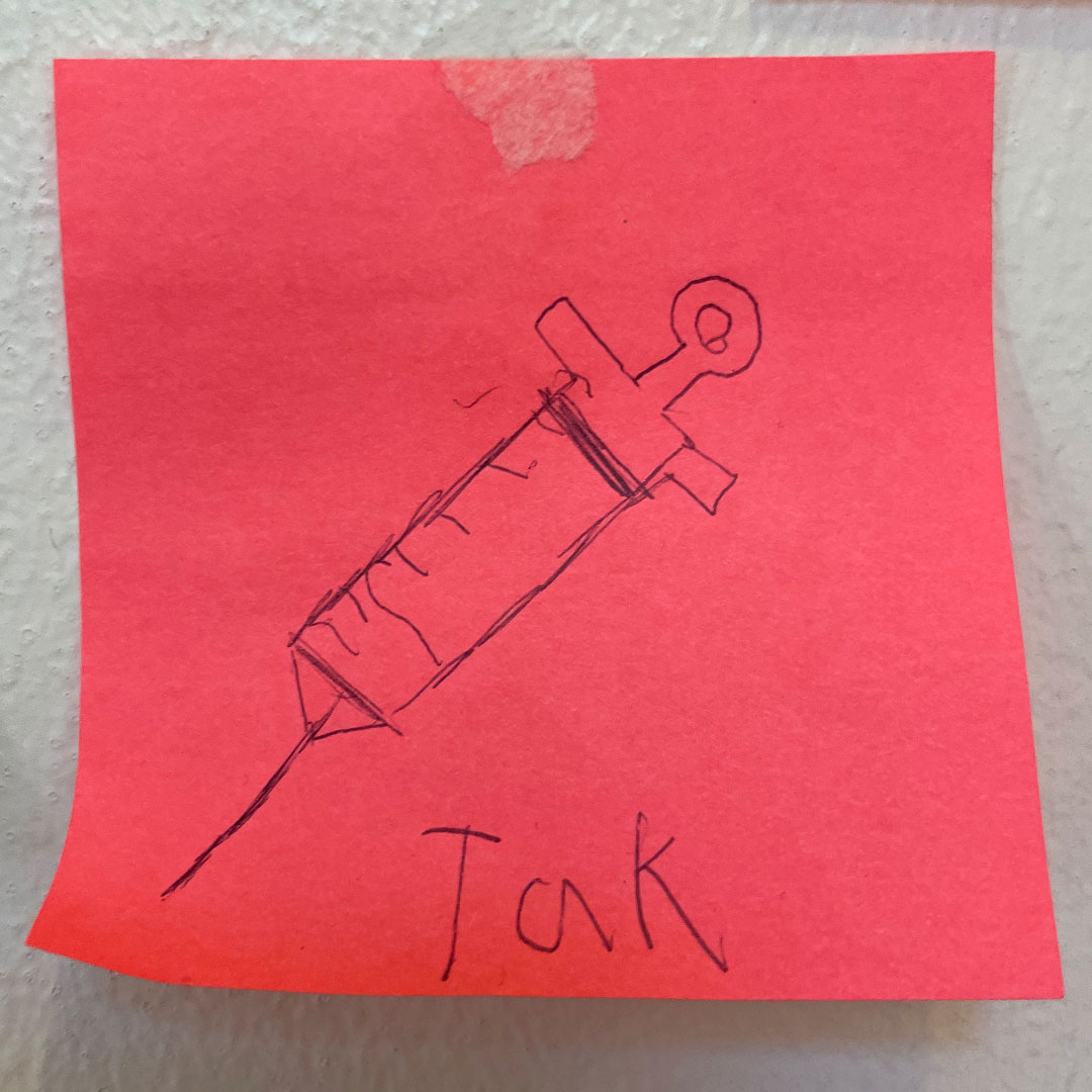 In the winter of 2021/2022 I did a stretch with covid vaccination, partly to experience it and partly to help. A good number of parents couldn’t get their children to relax before the shot and so we had the kids draw on little stickies – it helped. This is just a tiny part of the thousands and thousands of drawings.