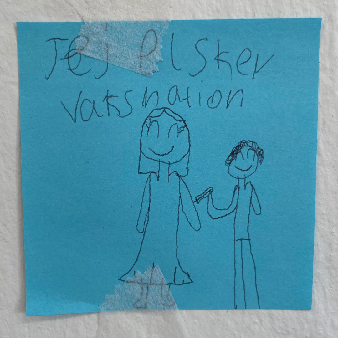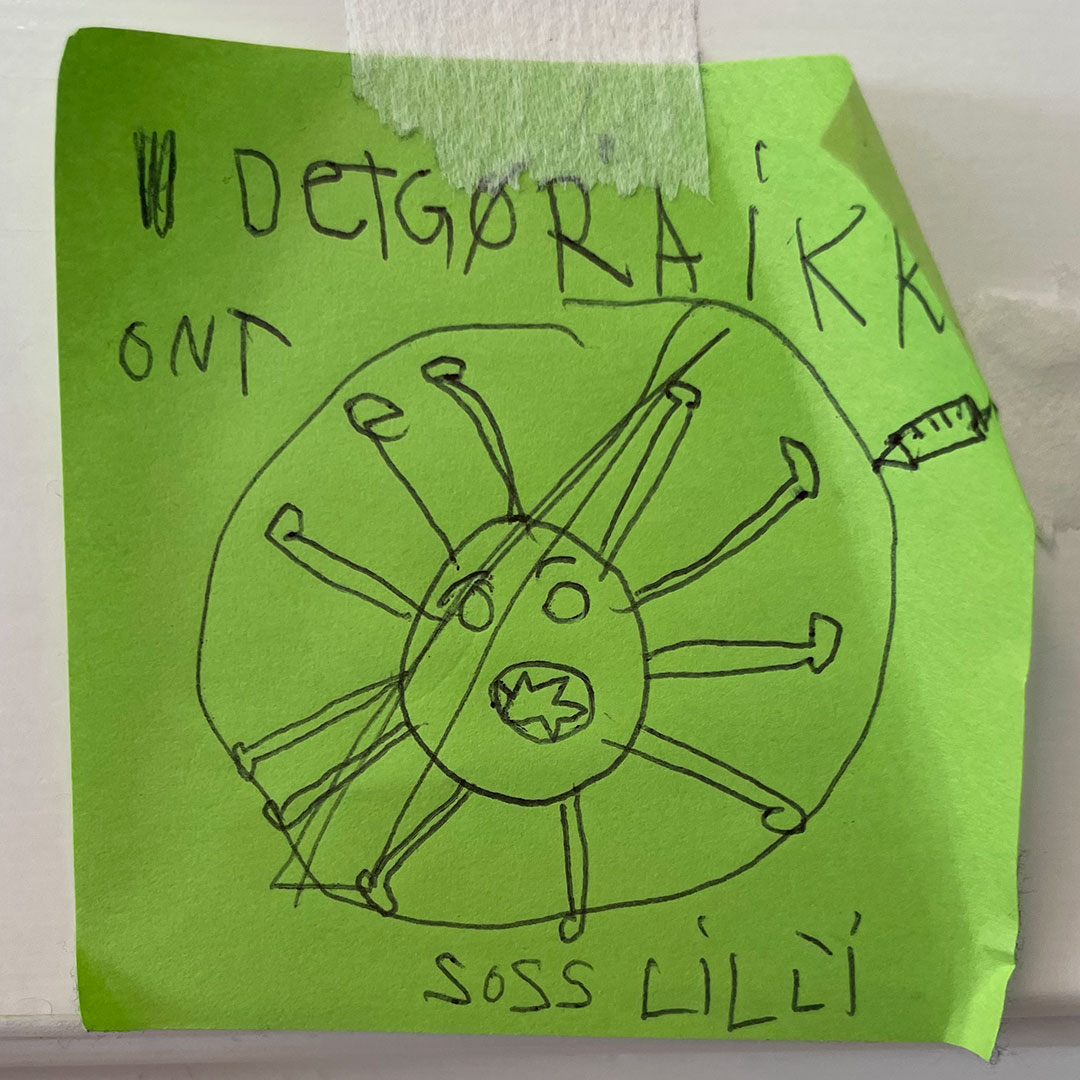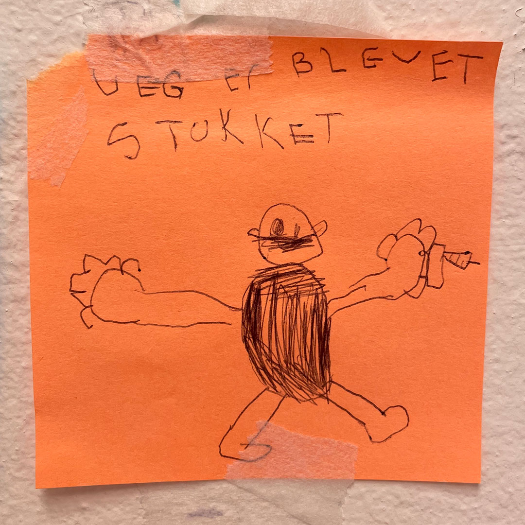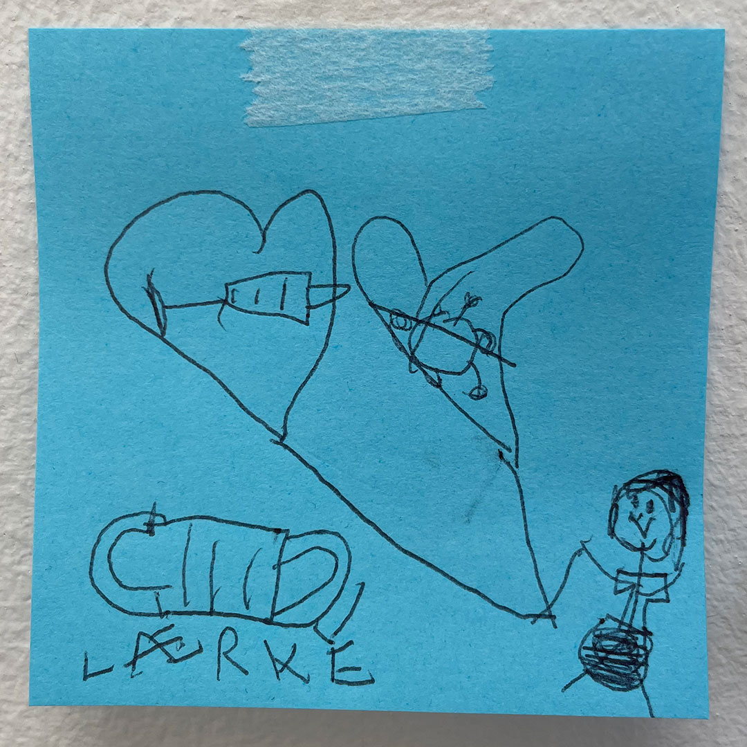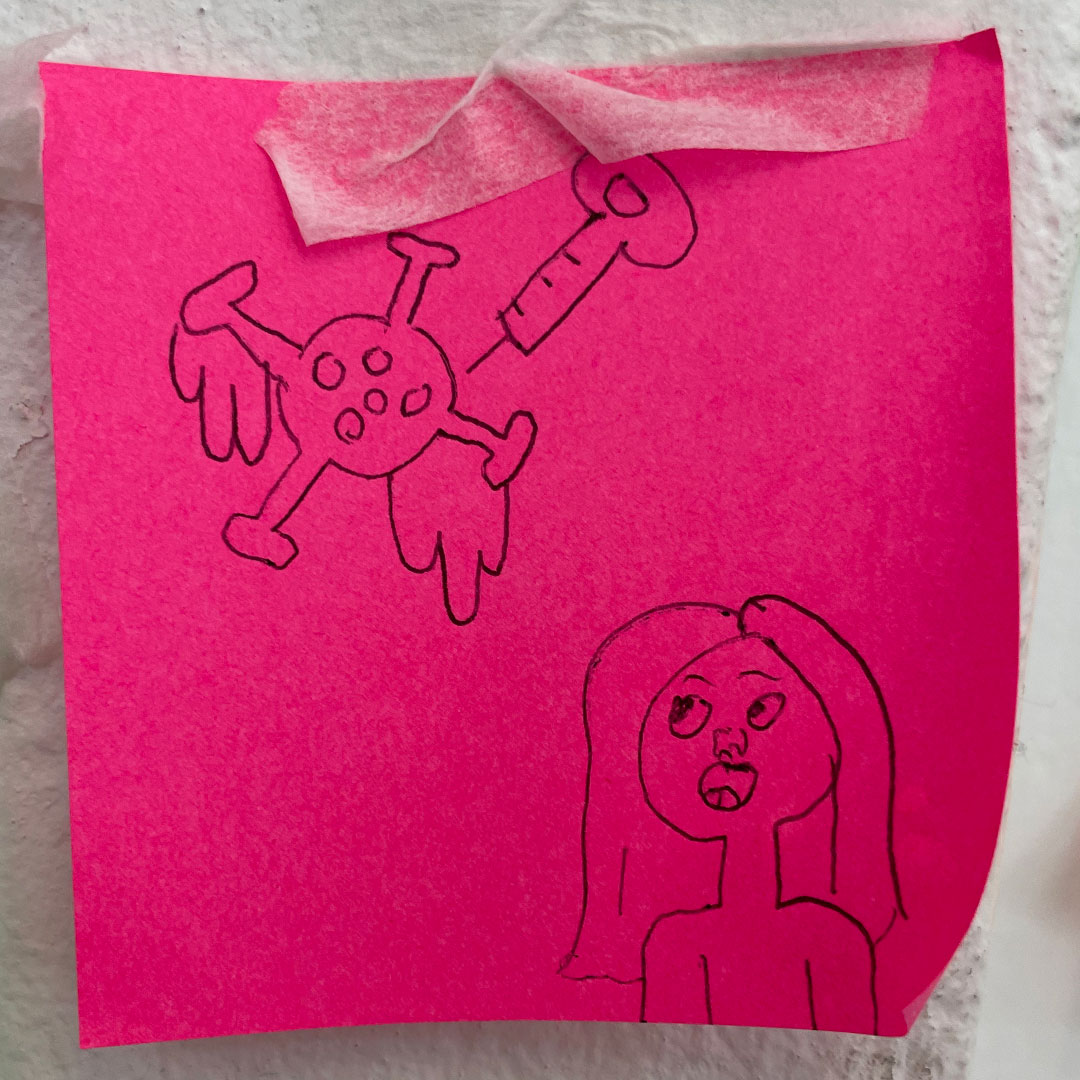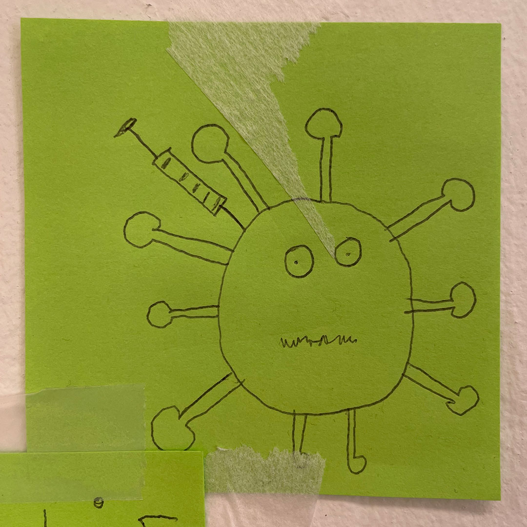In the winter of 2021/2022 I did a stretch with covid vaccination, partly to experience it and partly to help. A good number of parents couldn’t get their children to relax before the shot and so we had the kids draw on little stickies – it helped. This is just a tiny part of the thousands and thousands of drawings.