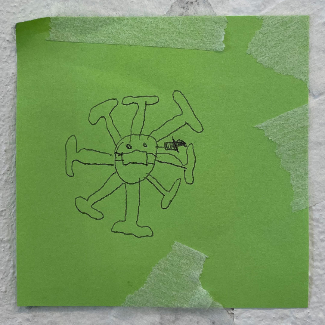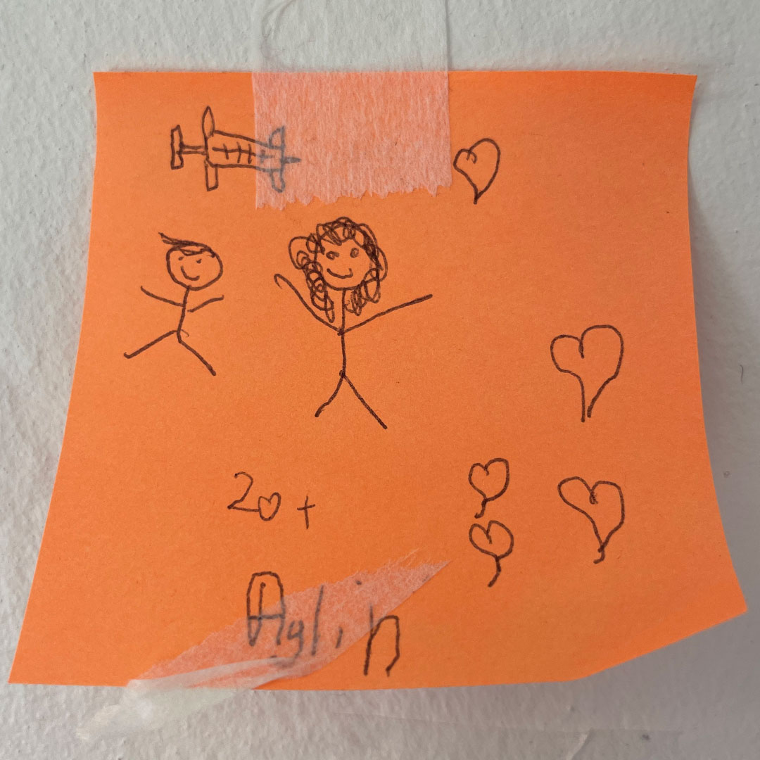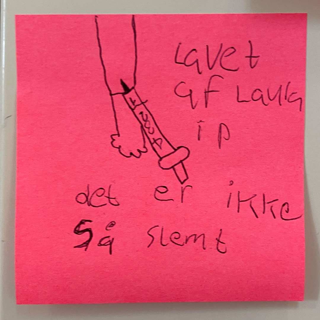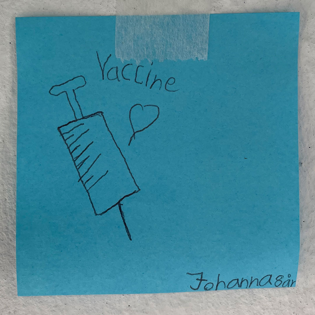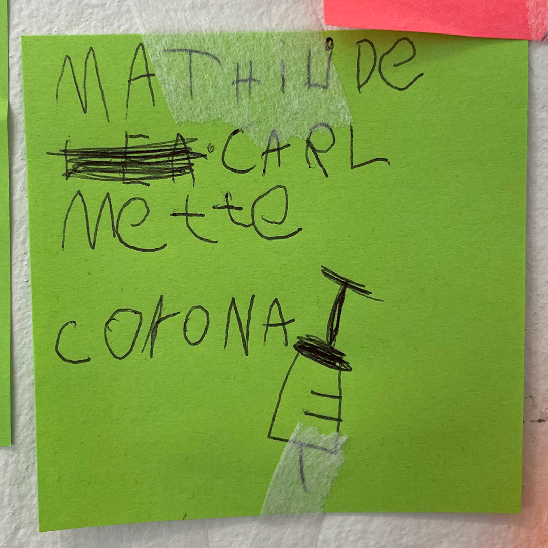 In the winter of 2021/2022 I did a stretch with covid vaccination, partly to experience it and partly to help. A good number of parents couldn’t get their children to relax before the shot and so we had the kids draw on little stickies – it helped. This is just a tiny part of the thousands and thousands of drawings.