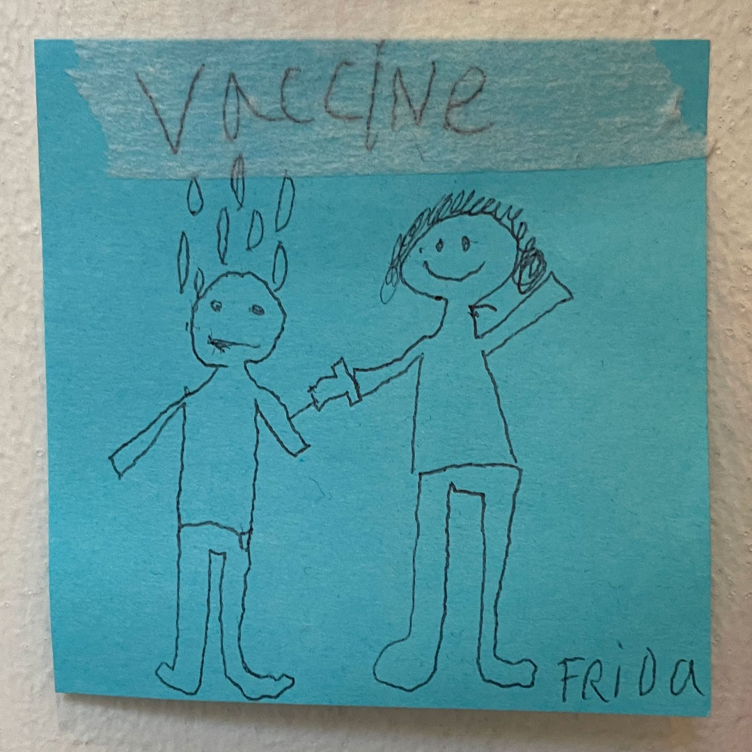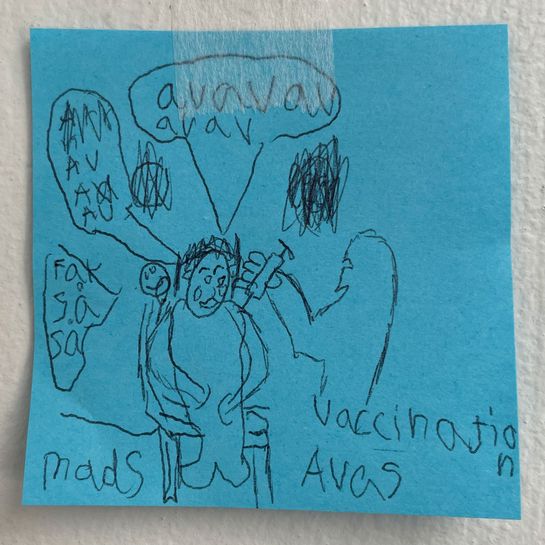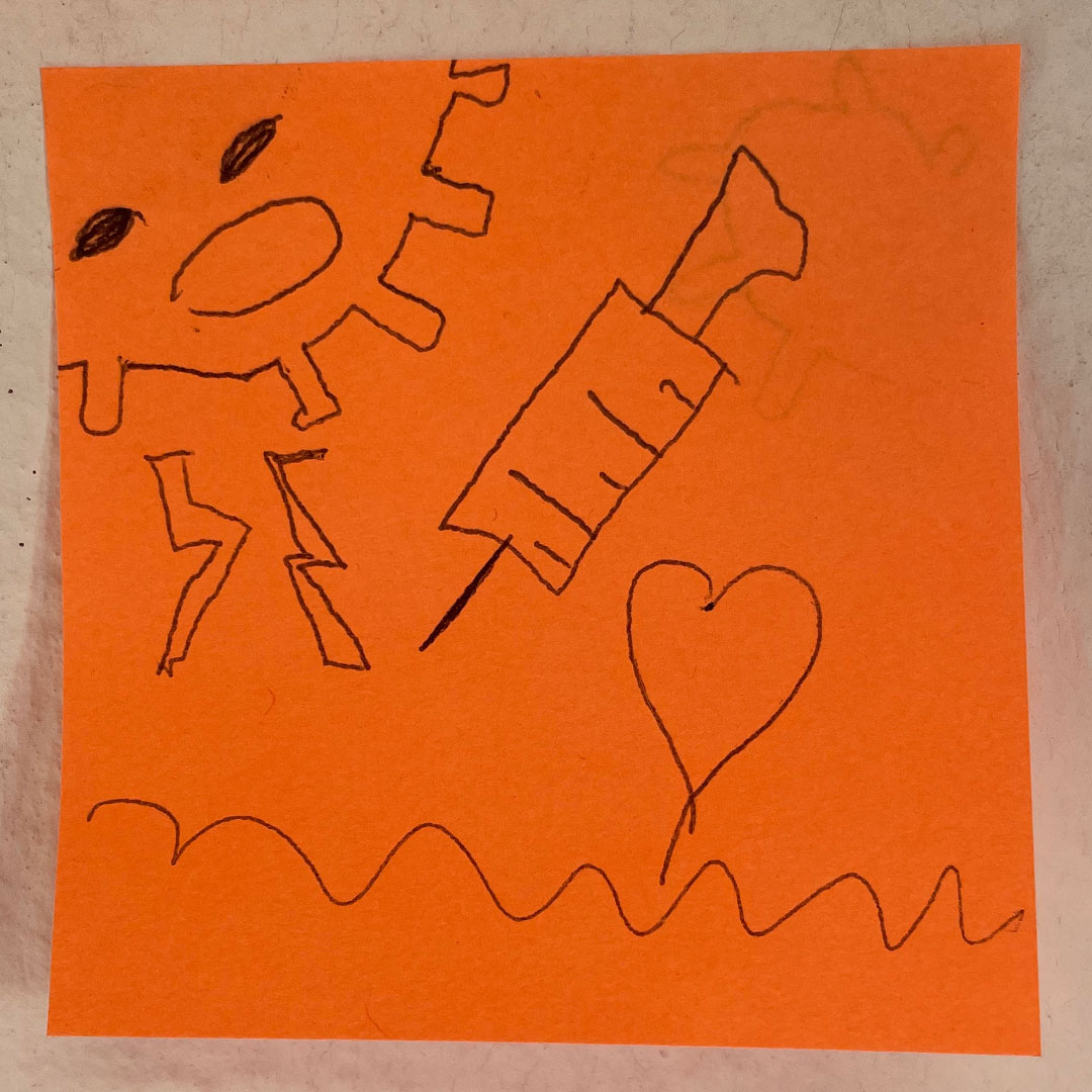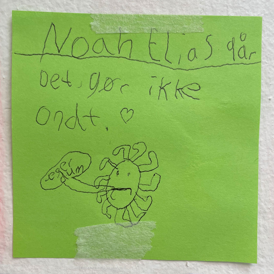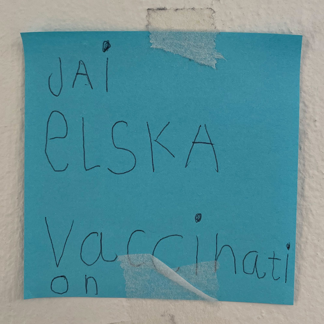In the winter of 2021/2022 I did a stretch with covid vaccination, partly to experience it and partly to help. A good number of parents couldn’t get their children to relax before the shot and so we had the kids draw on little stickies – it helped. This is just a tiny part of the thousands and thousands of drawings.