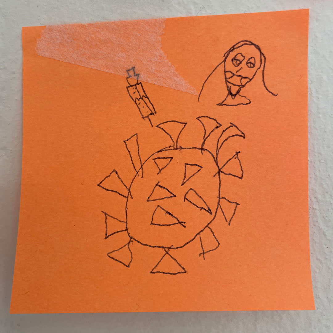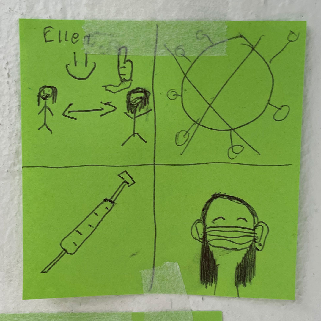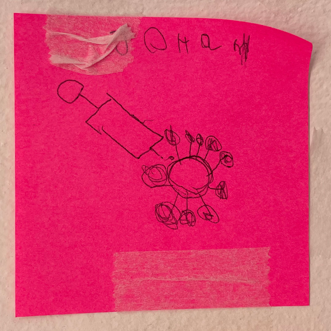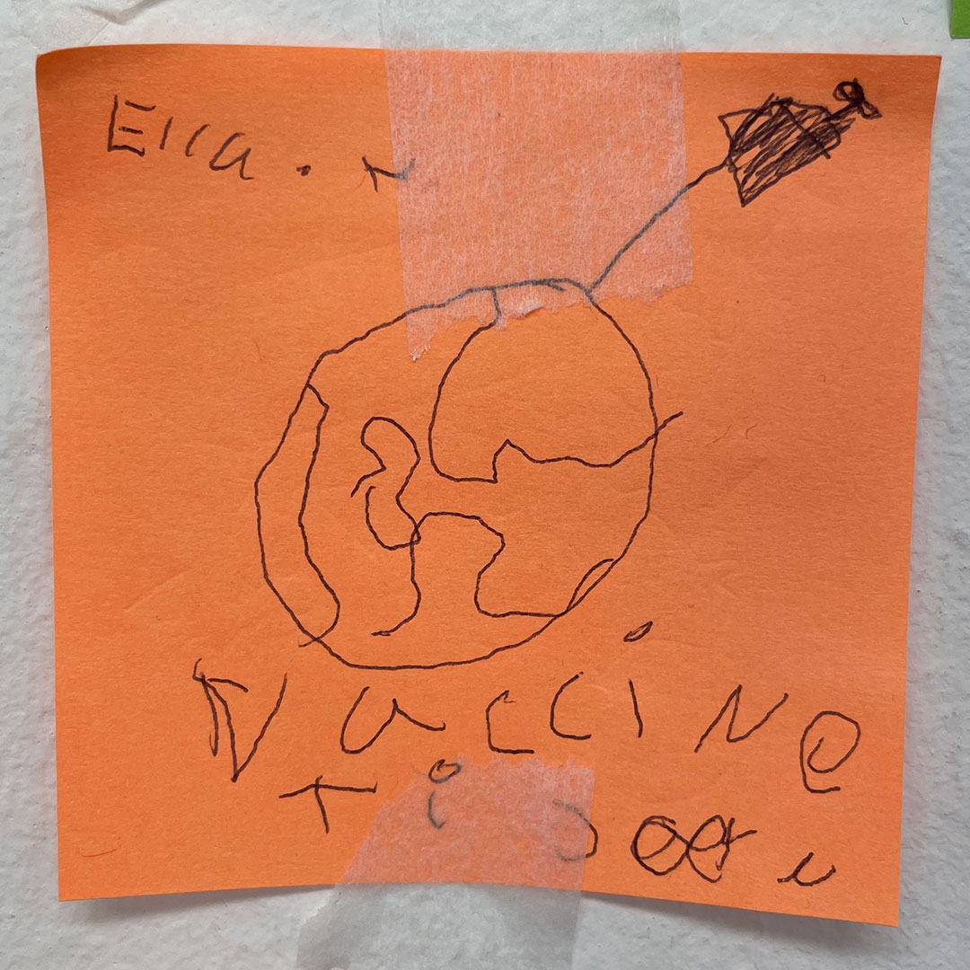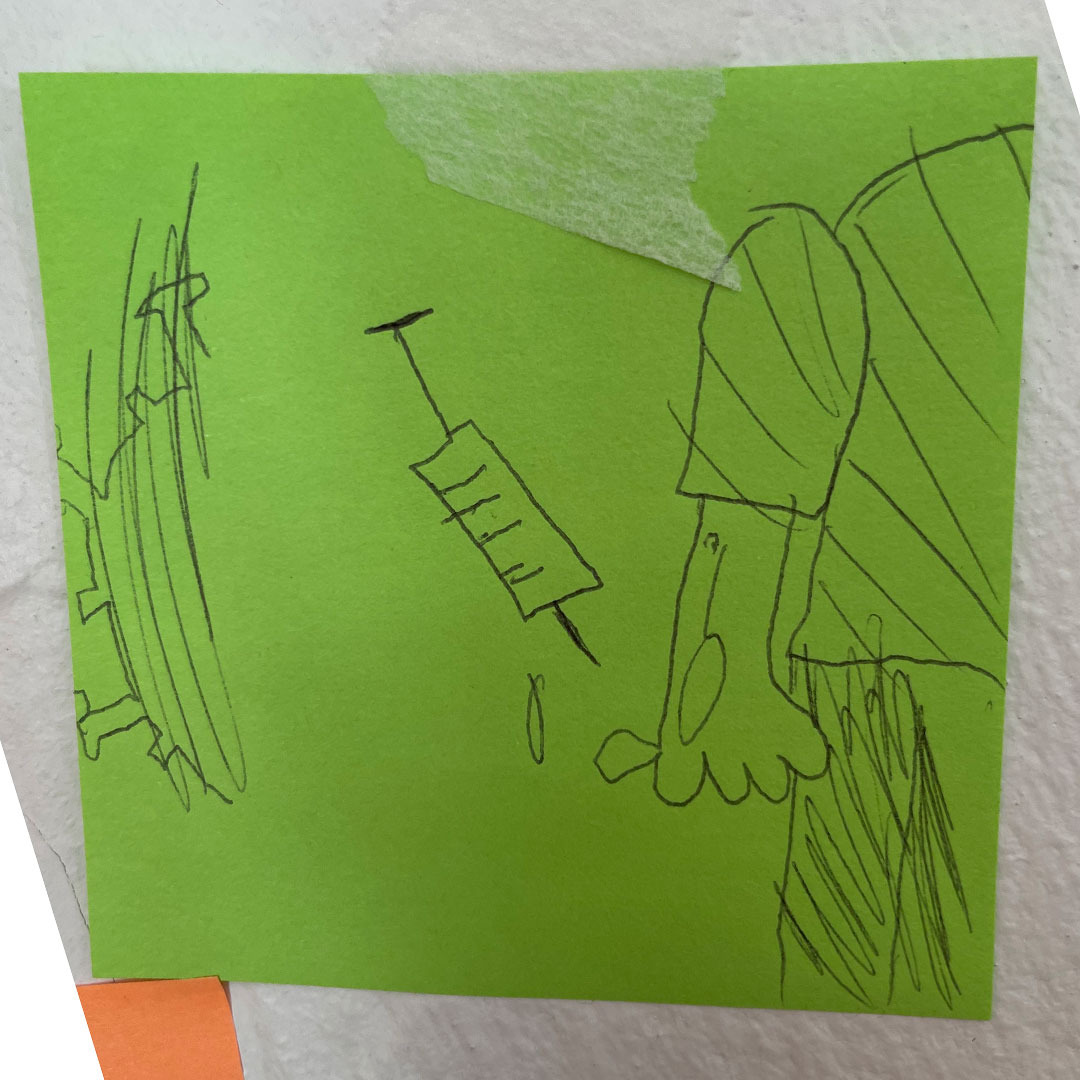 In the winter of 2021/2022 I did a stretch with covid vaccination, partly to experience it and partly to help. A good number of parents couldn’t get their children to relax before the shot and so we had the kids draw on little stickies – it helped. This is just a tiny part of the thousands and thousands of drawings.