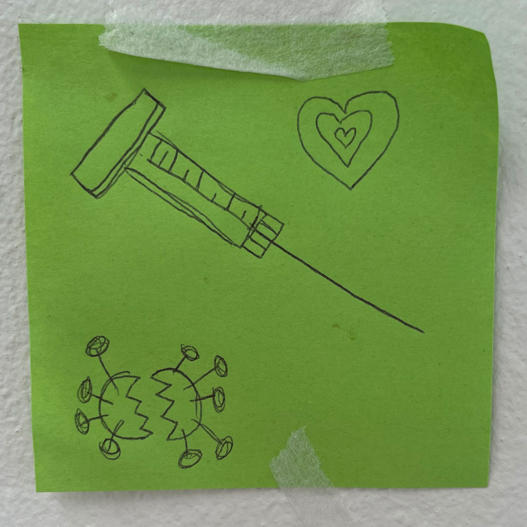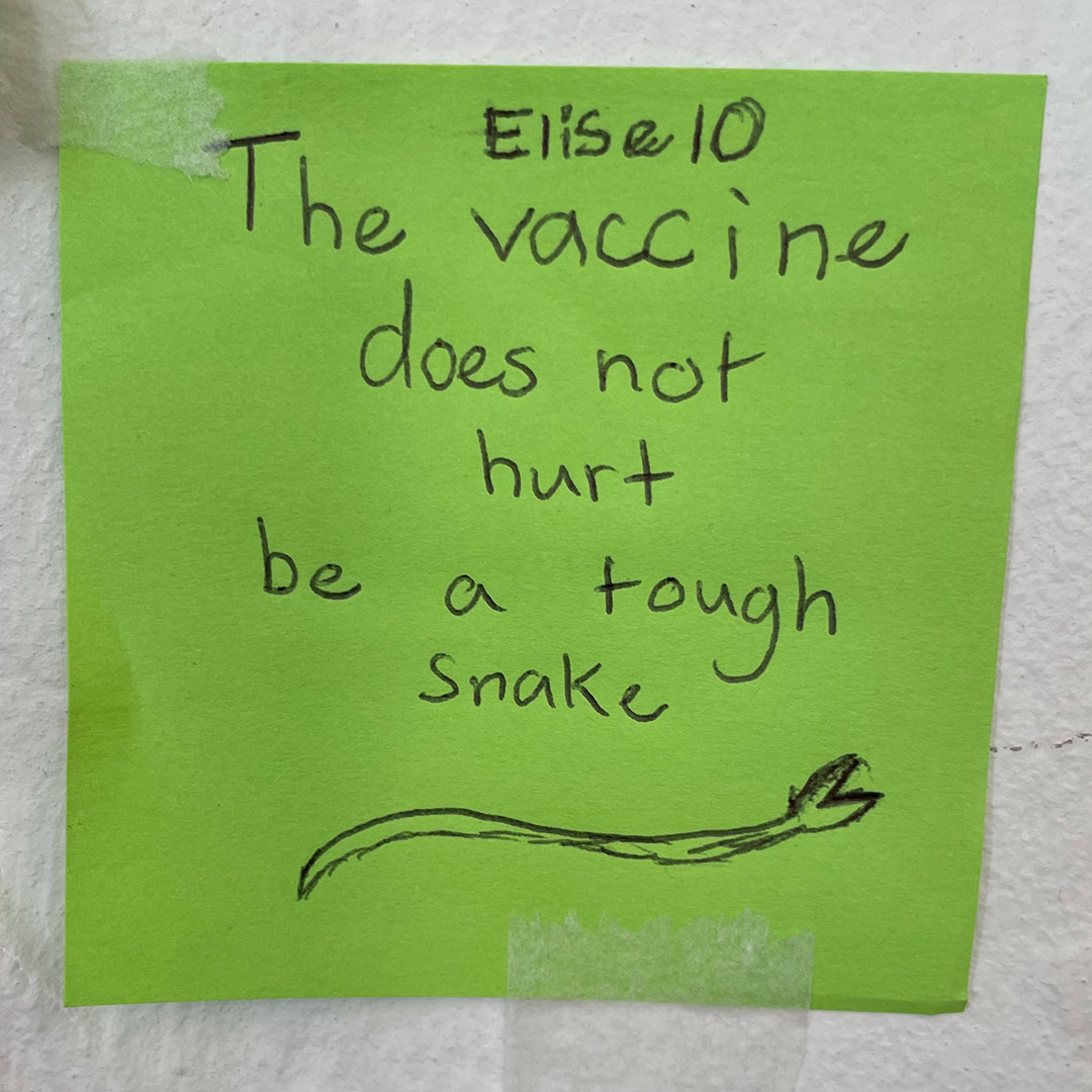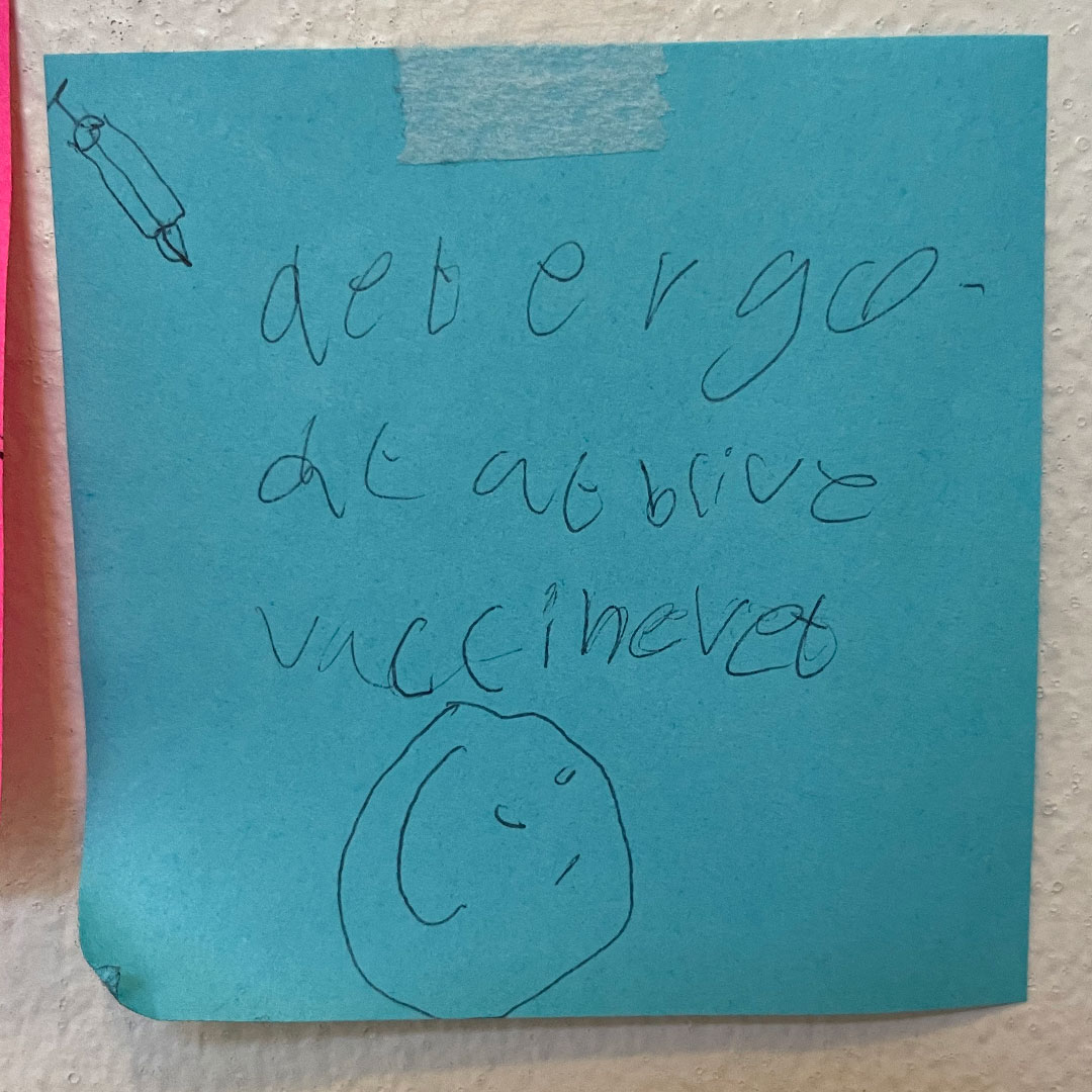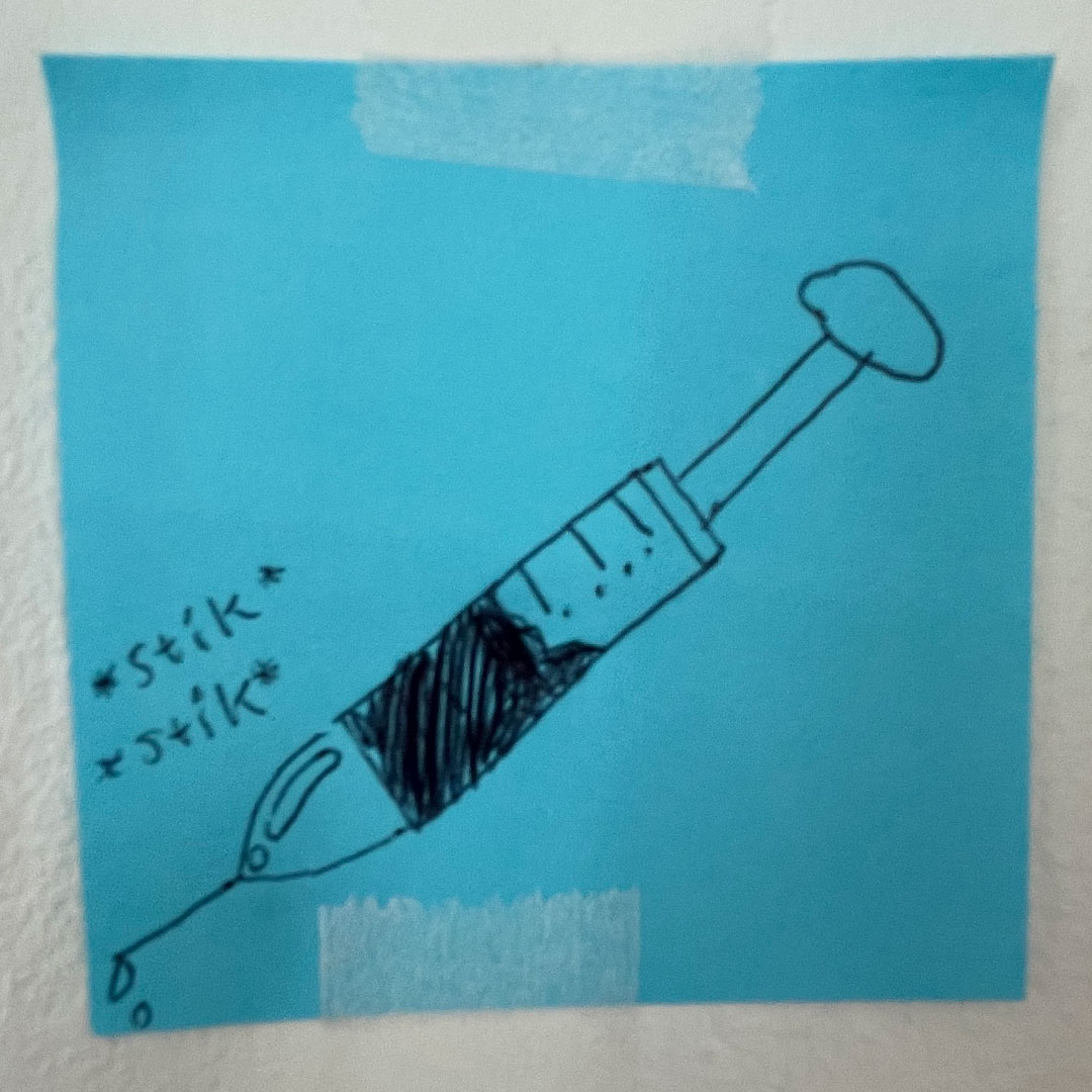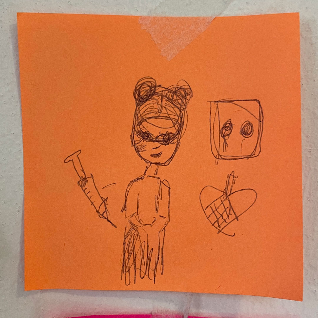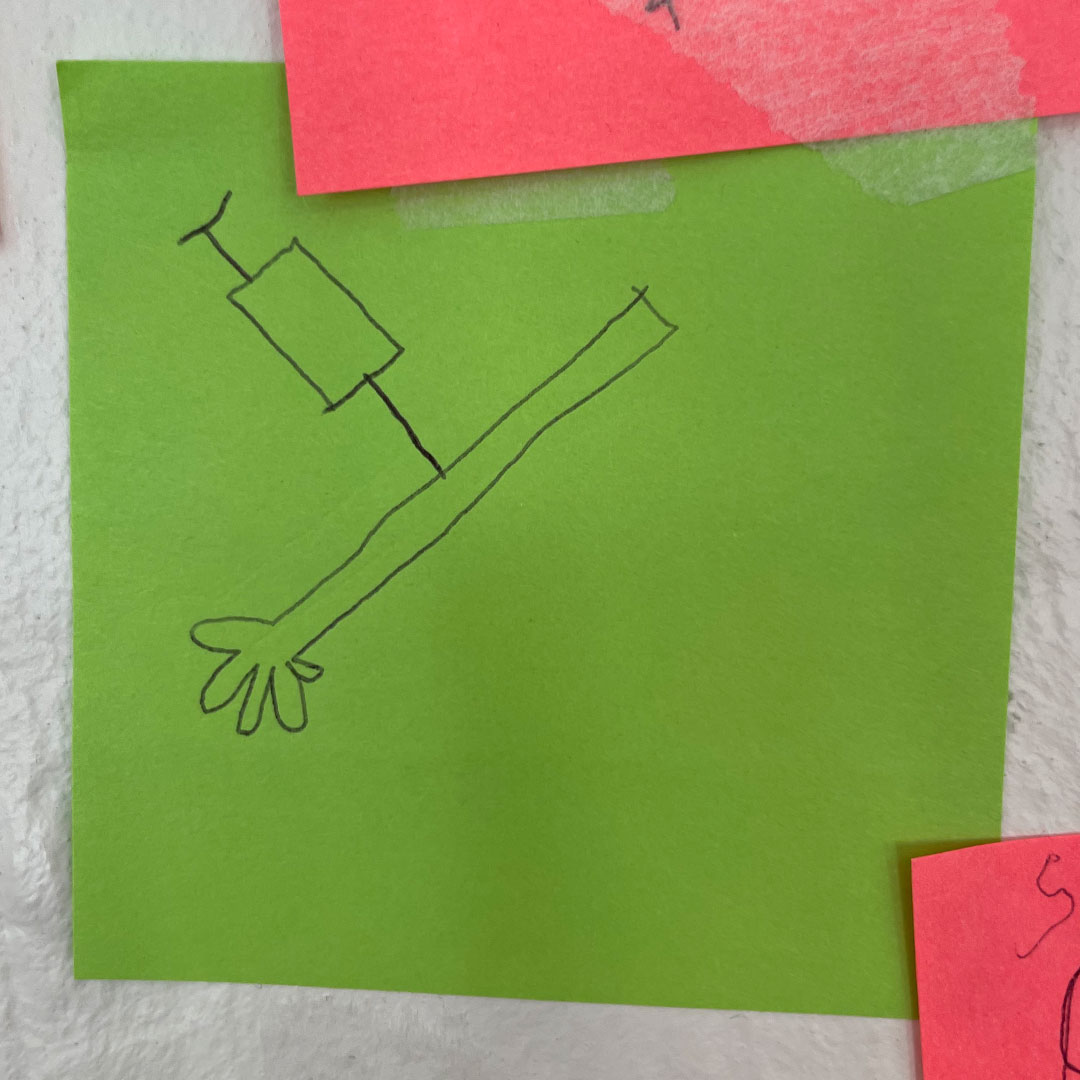 In the winter of 2021/2022 I did a stretch with covid vaccination, partly to experience it and partly to help. A good number of parents couldn’t get their children to relax before the shot and so we had the kids draw on little stickies – it helped. This is just a tiny part of the thousands and thousands of drawings.