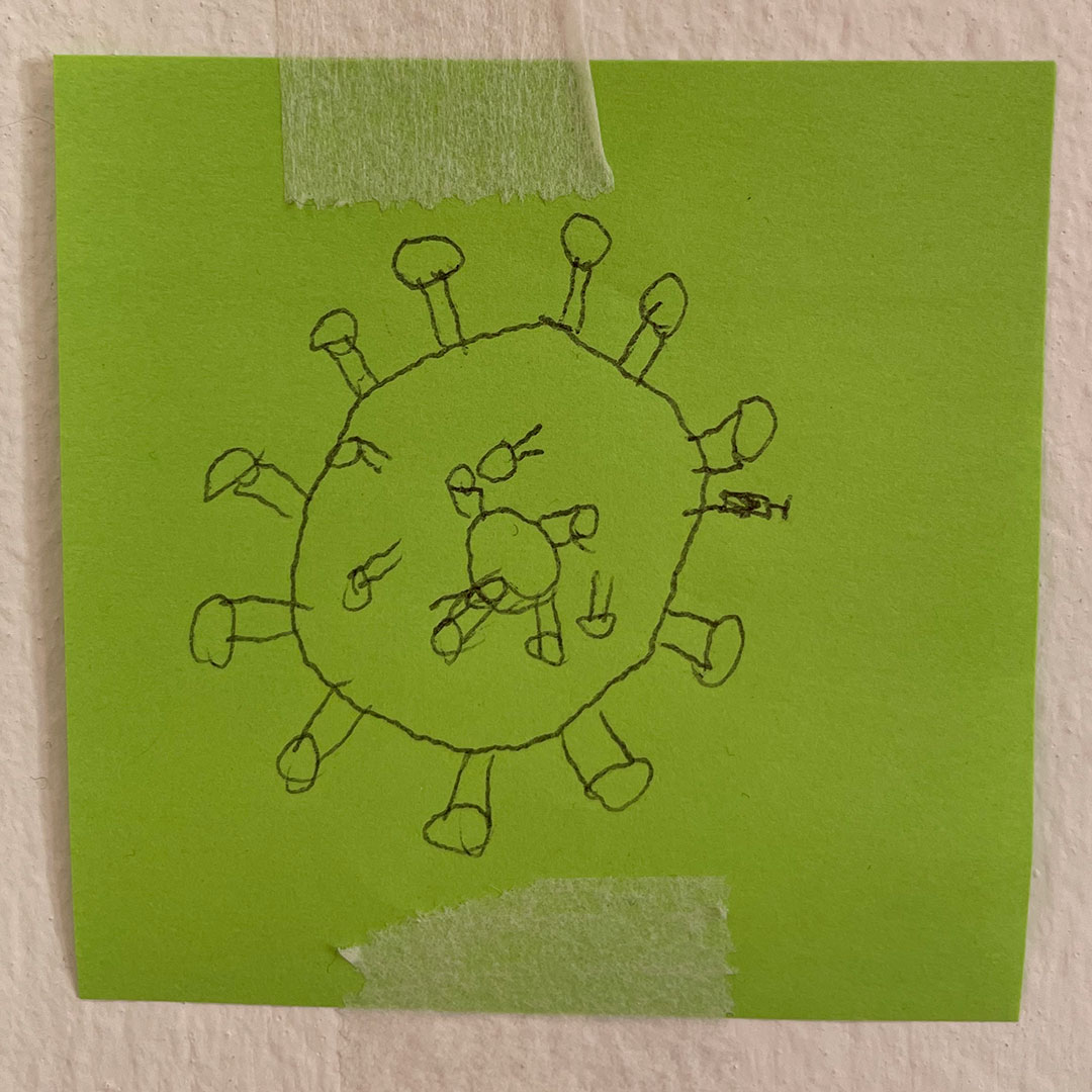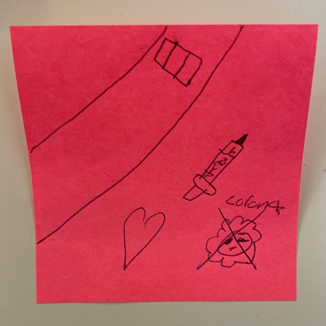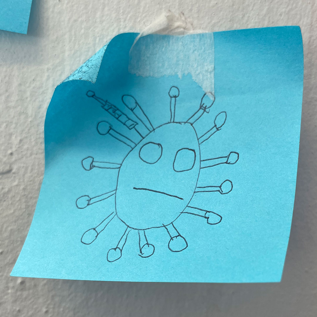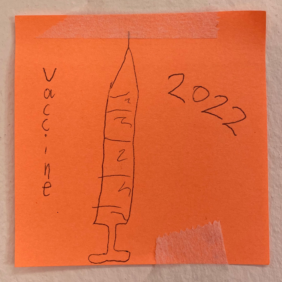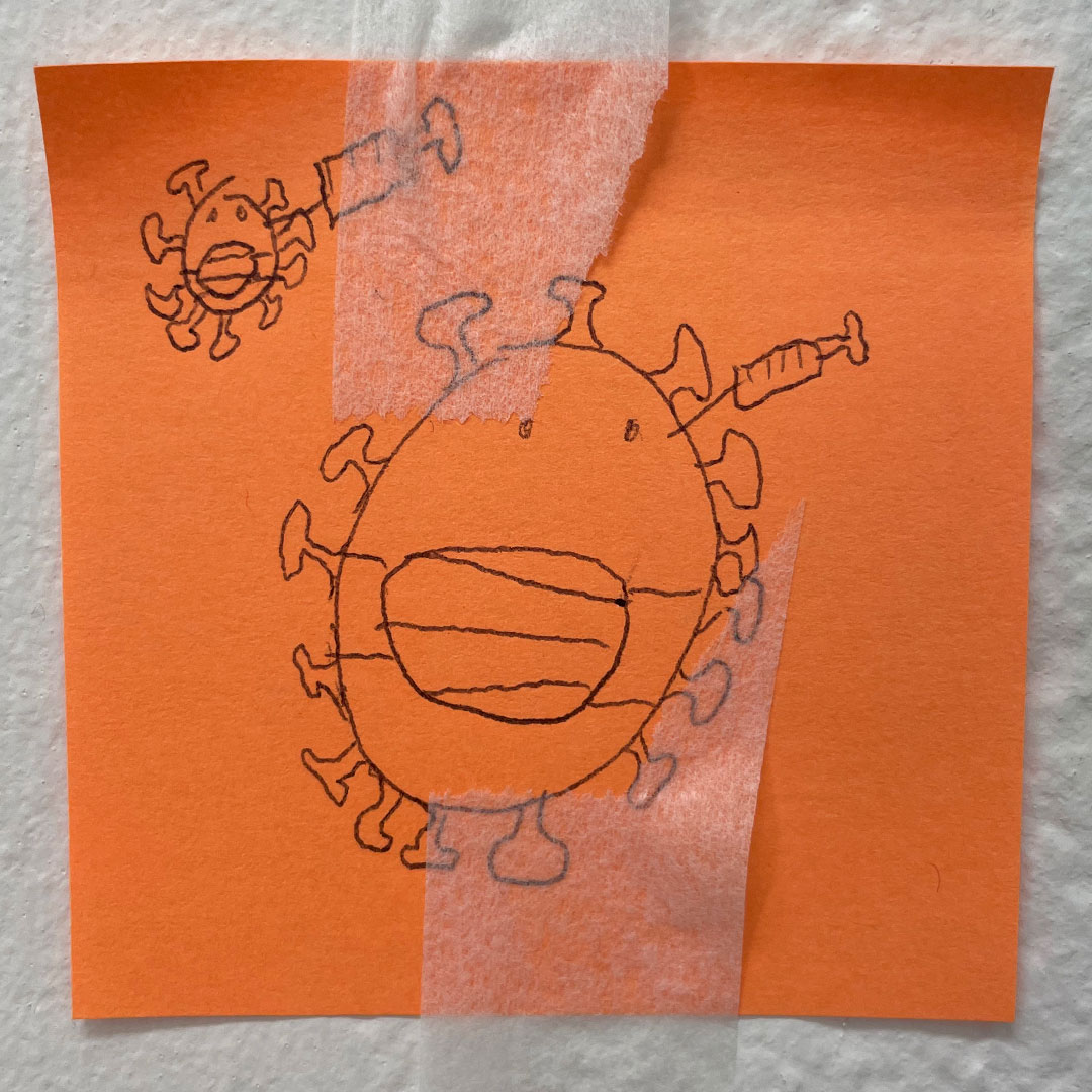 In the winter of 2021/2022 I did a stretch with covid vaccination, partly to experience it and partly to help. A good number of parents couldn’t get their children to relax before the shot and so we had the kids draw on little stickies – it helped. This is just a tiny part of the thousands and thousands of drawings.