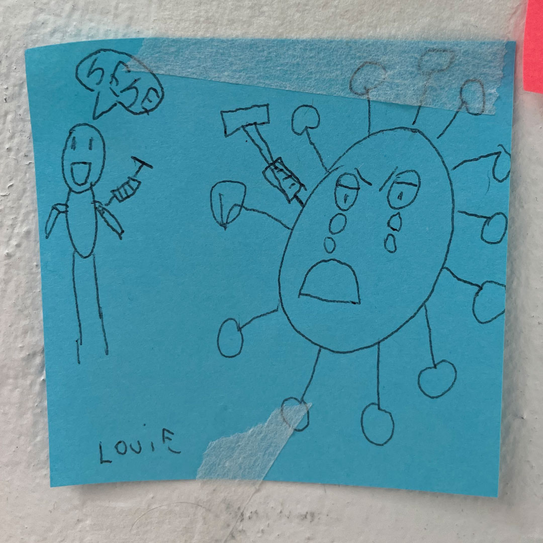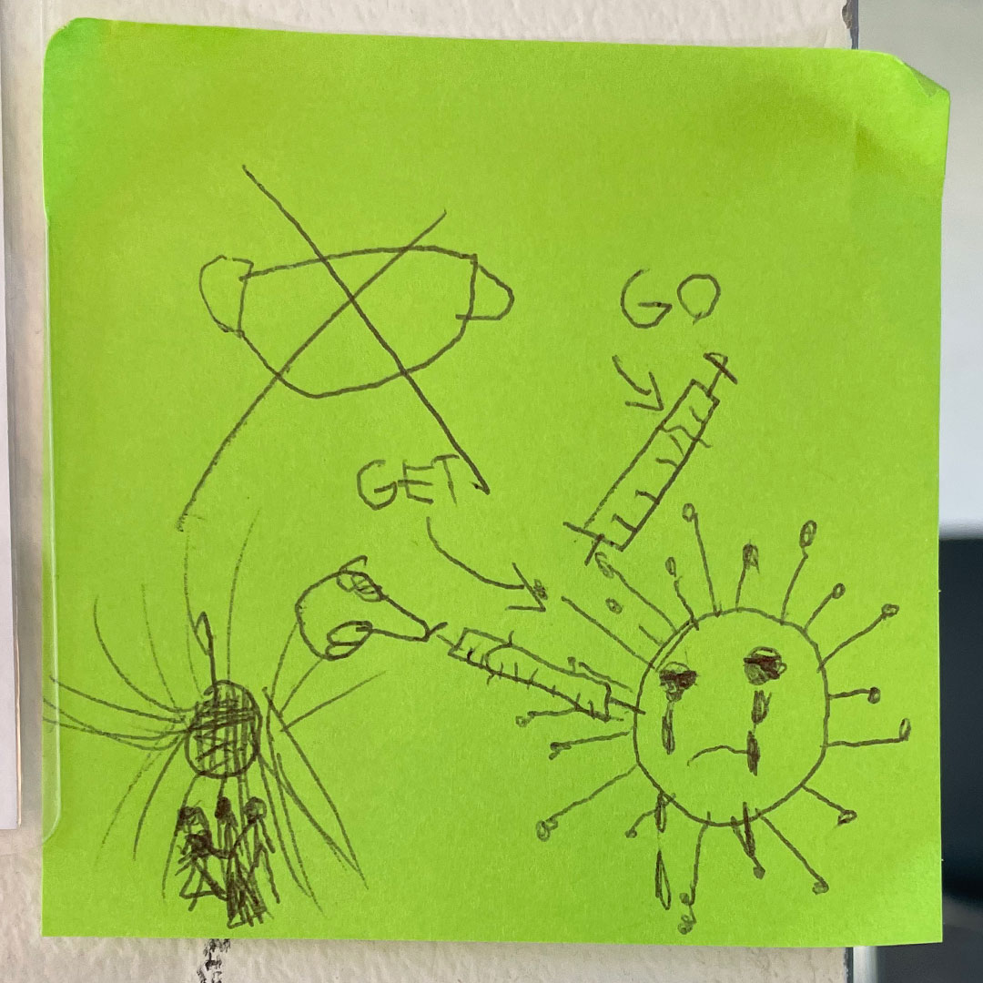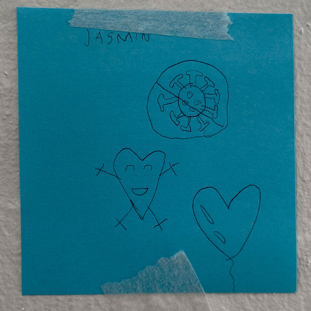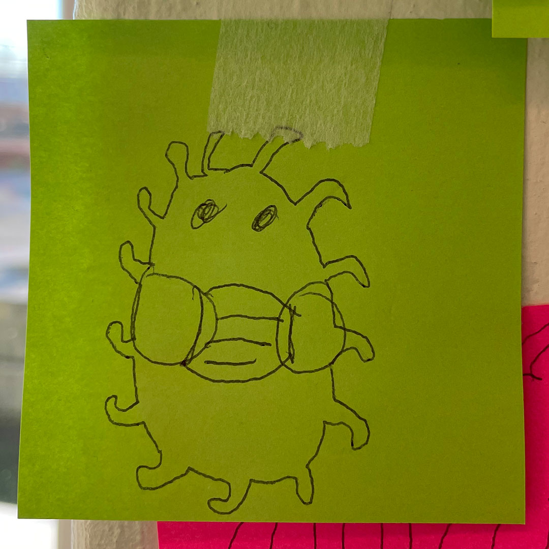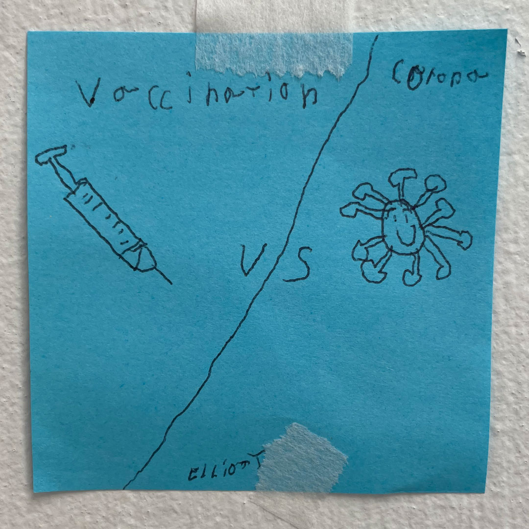 In the winter of 2021/2022 I did a stretch with covid vaccination, partly to experience it and partly to help. A good number of parents couldn’t get their children to relax before the shot and so we had the kids draw on little stickies – it helped. This is just a tiny part of the thousands and thousands of drawings.