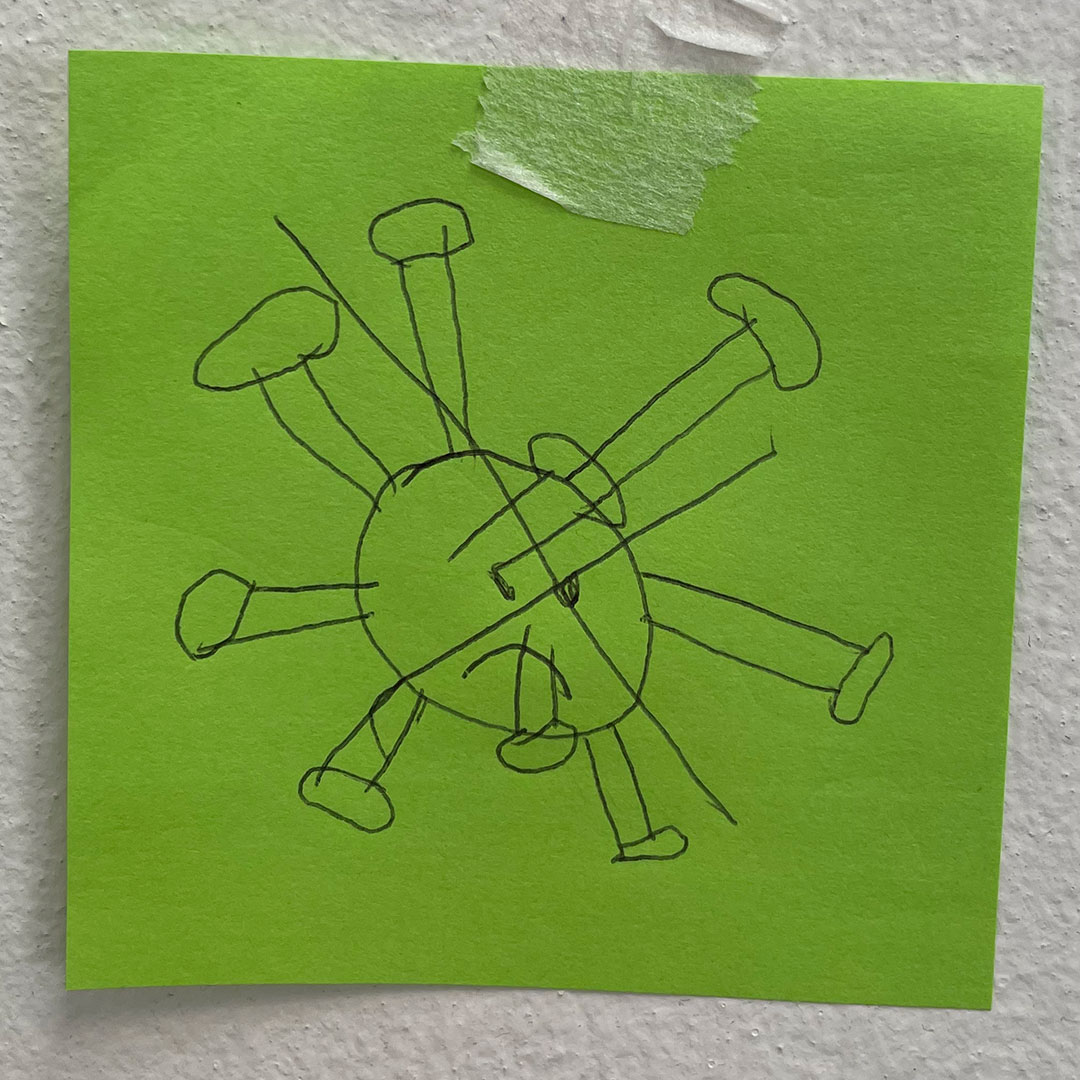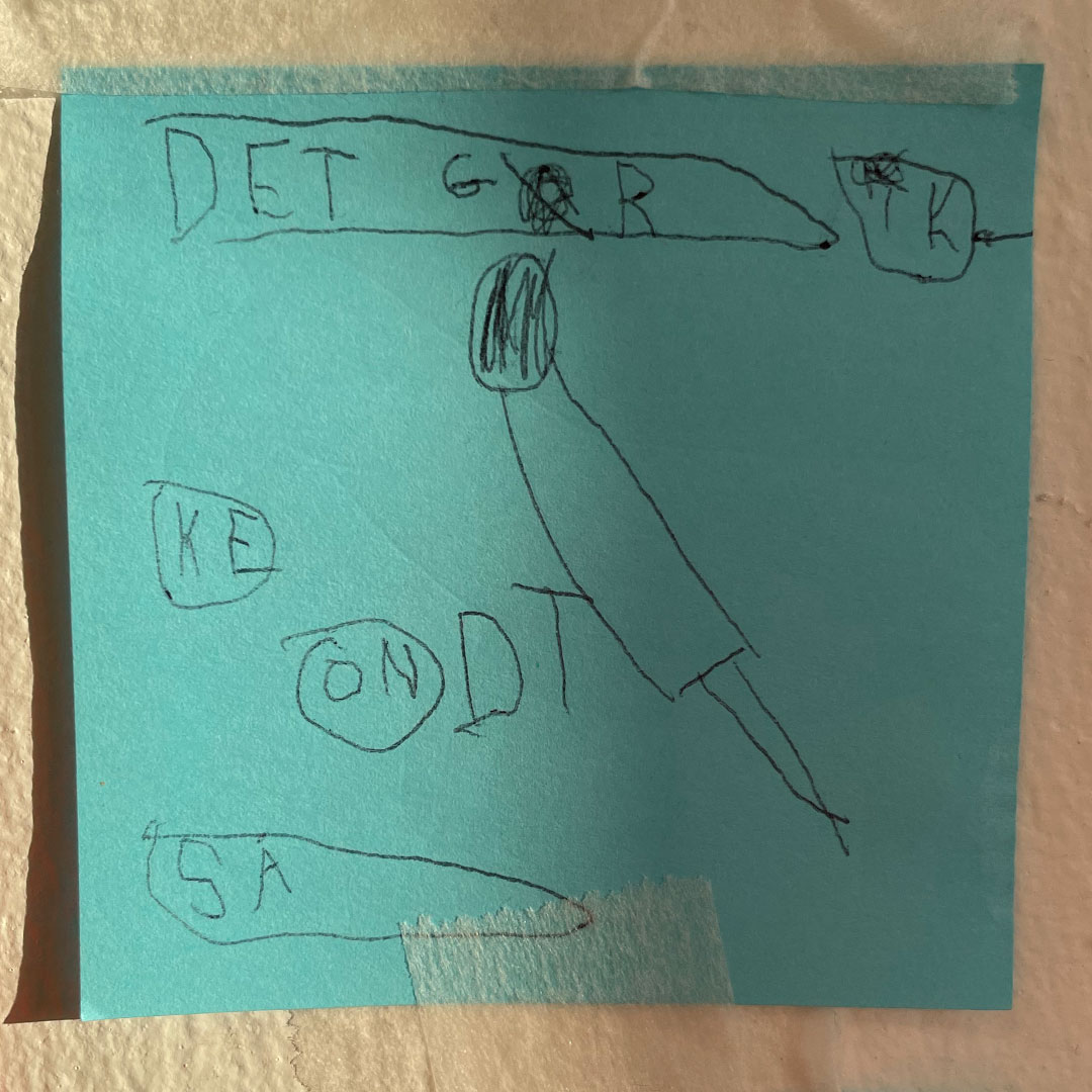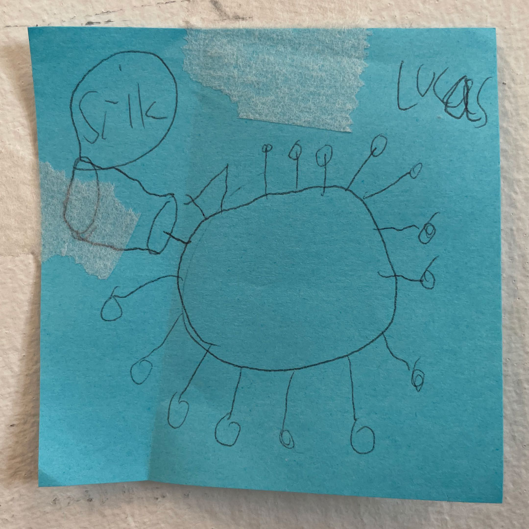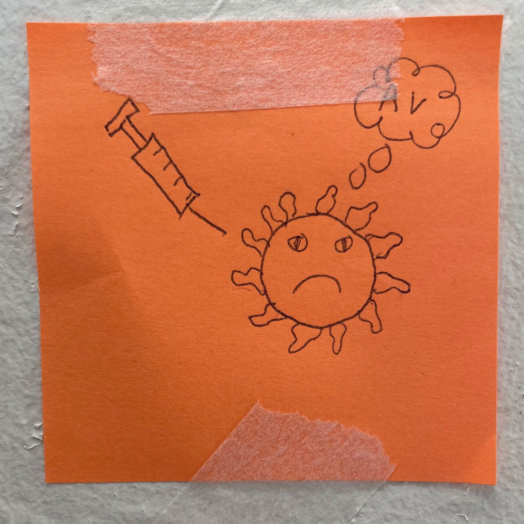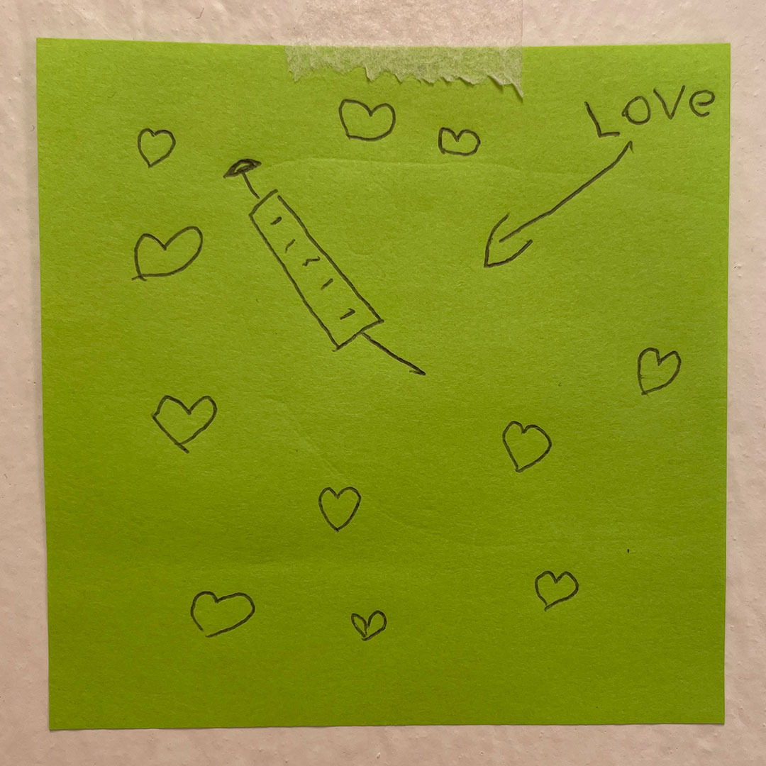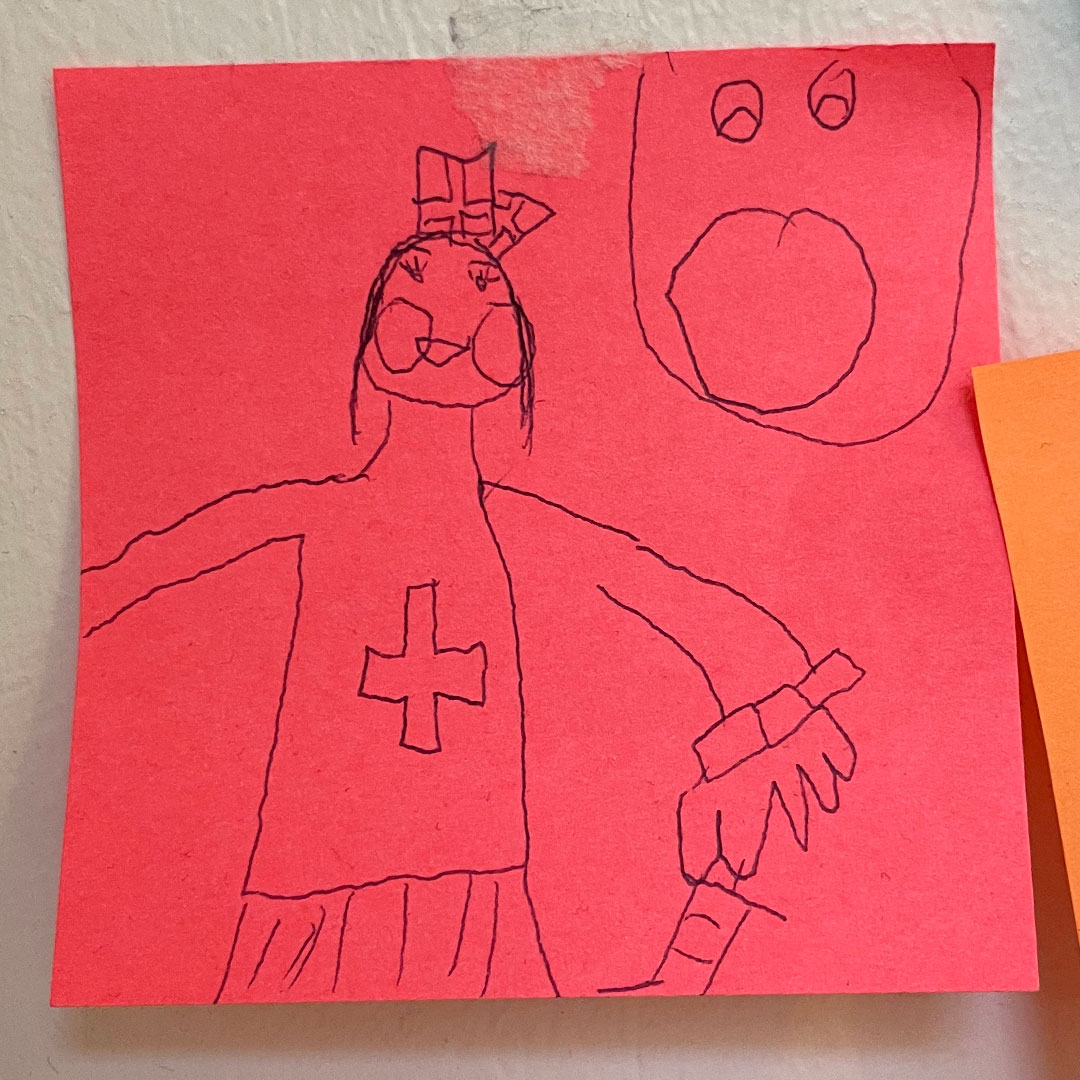 In the winter of 2021/2022 I did a stretch with covid vaccination, partly to experience it and partly to help. A good number of parents couldn’t get their children to relax before the shot and so we had the kids draw on little stickies – it helped. This is just a tiny part of the thousands and thousands of drawings.