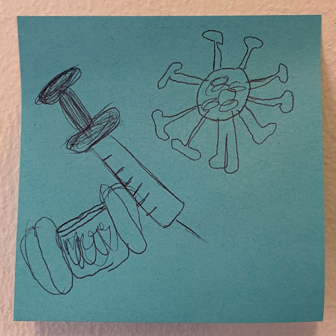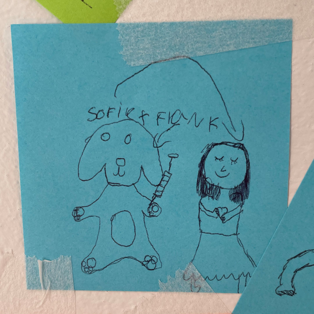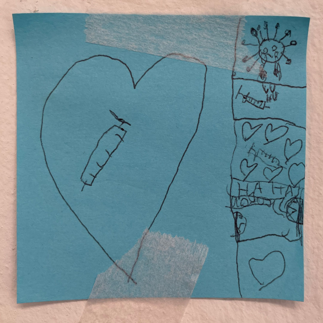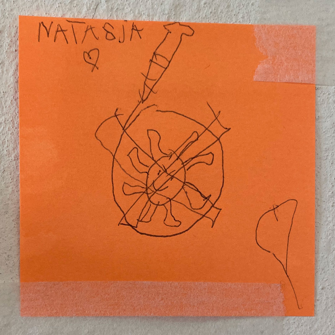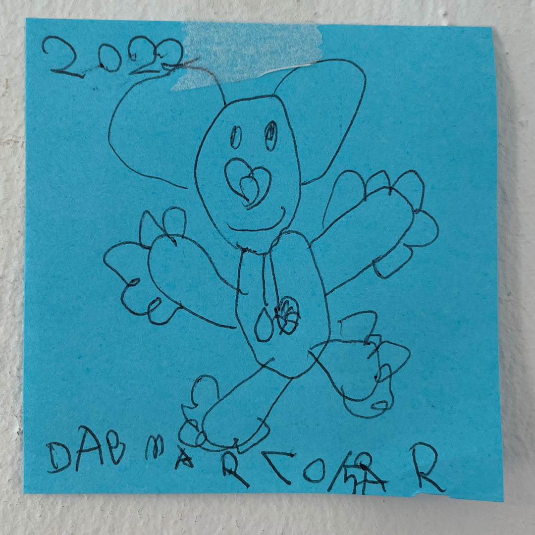 In the winter of 2021/2022 I did a stretch with covid vaccination, partly to experience it and partly to help. A good number of parents couldn’t get their children to relax before the shot and so we had the kids draw on little stickies – it helped. This is just a tiny part of the thousands and thousands of drawings.