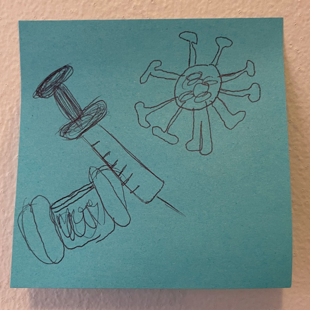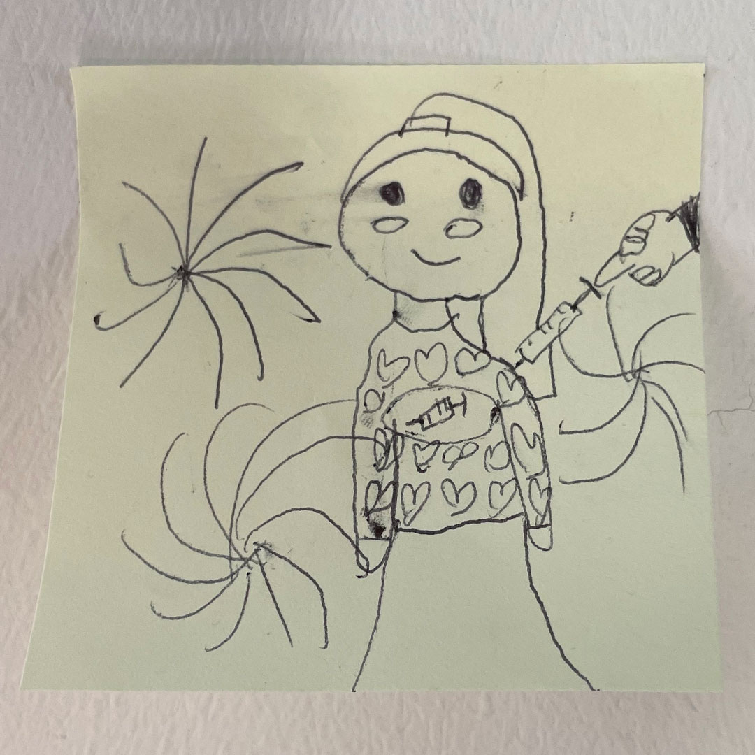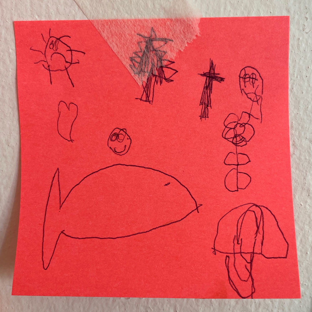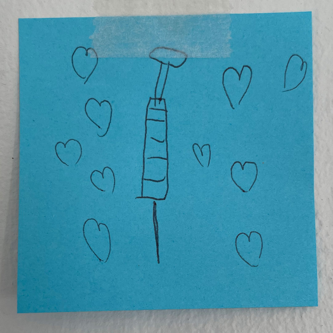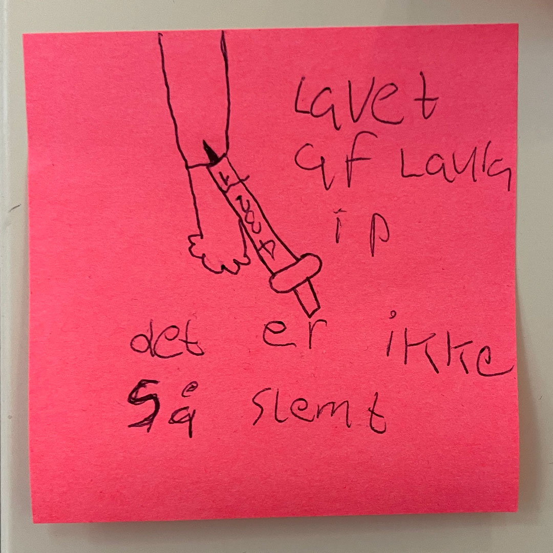 In the winter of 2021/2022 I did a stretch with covid vaccination, partly to experience it and partly to help. A good number of parents couldn’t get their children to relax before the shot and so we had the kids draw on little stickies – it helped. This is just a tiny part of the thousands and thousands of drawings.