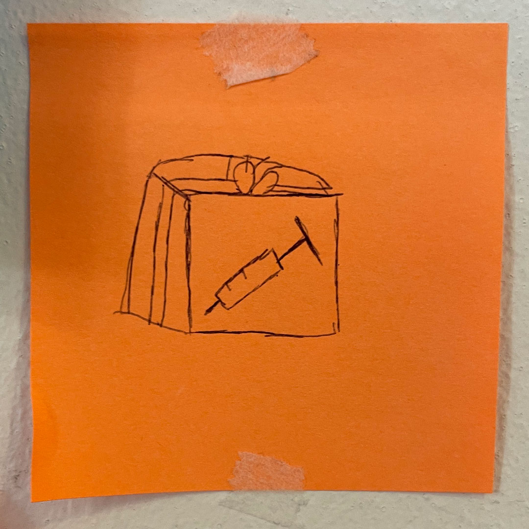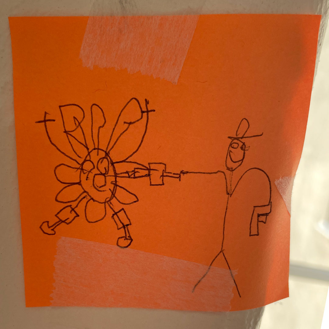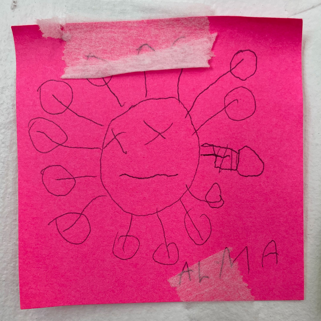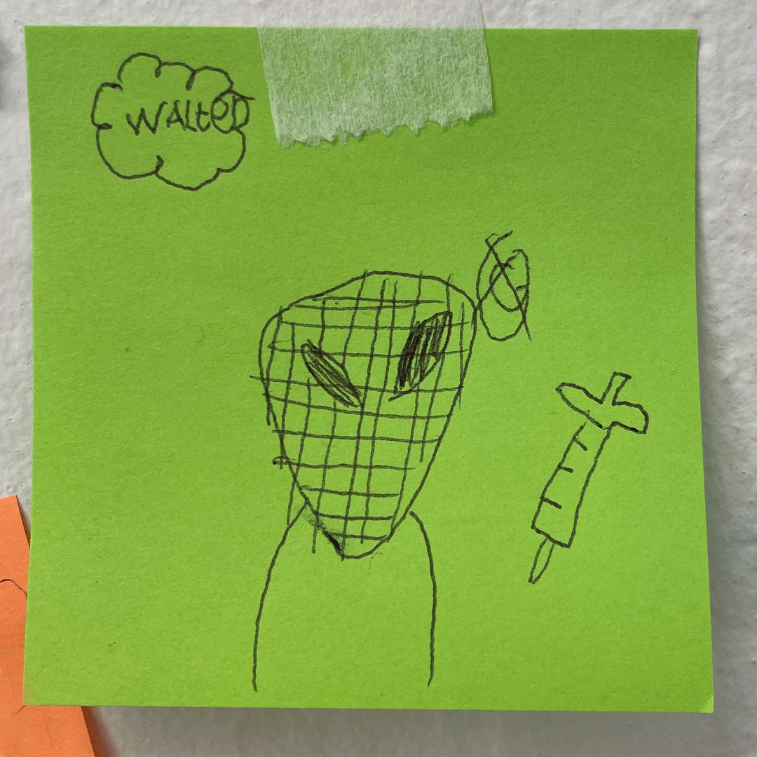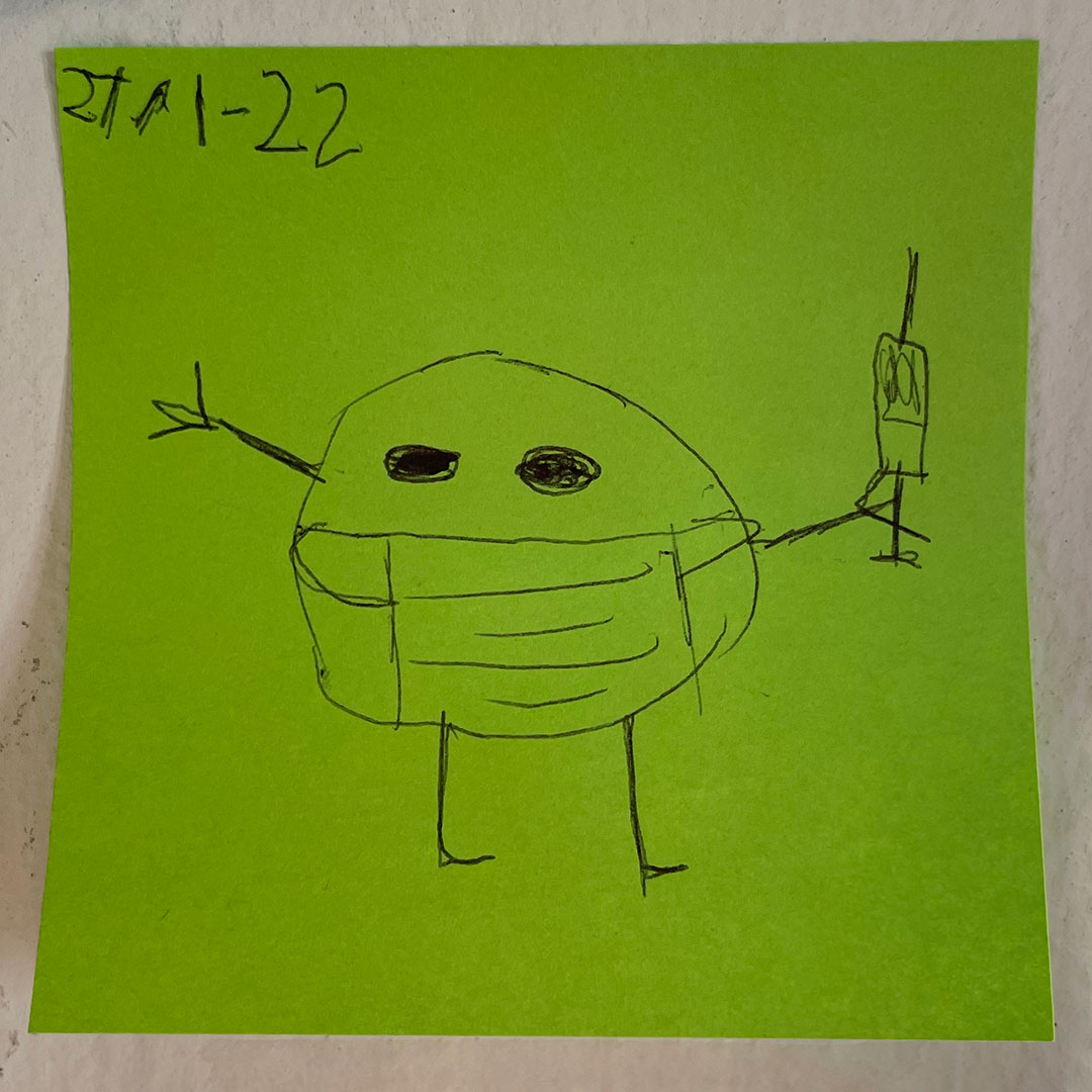 In the winter of 2021/2022 I did a stretch with covid vaccination, partly to experience it and partly to help. A good number of parents couldn’t get their children to relax before the shot and so we had the kids draw on little stickies – it helped. This is just a tiny part of the thousands and thousands of drawings.