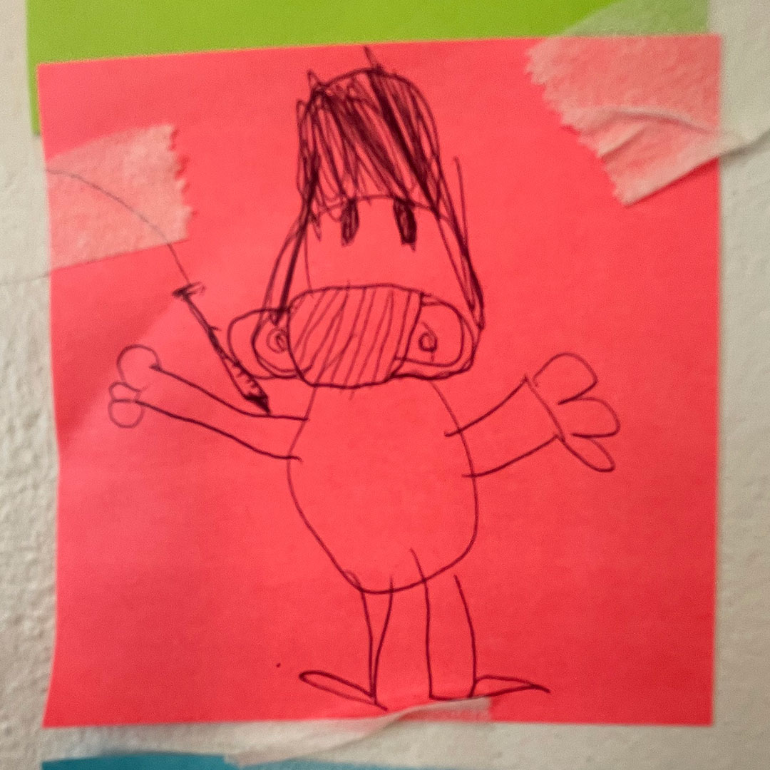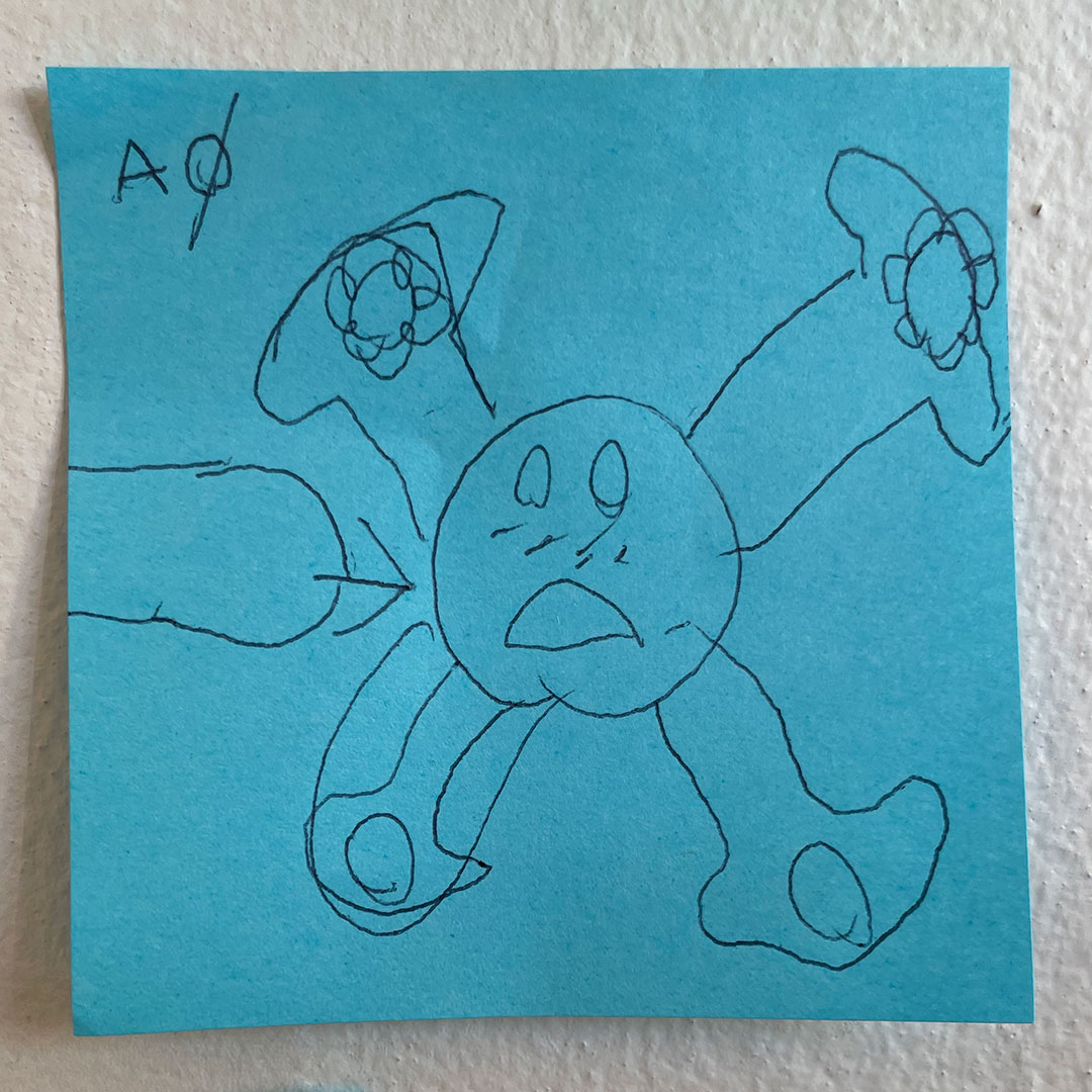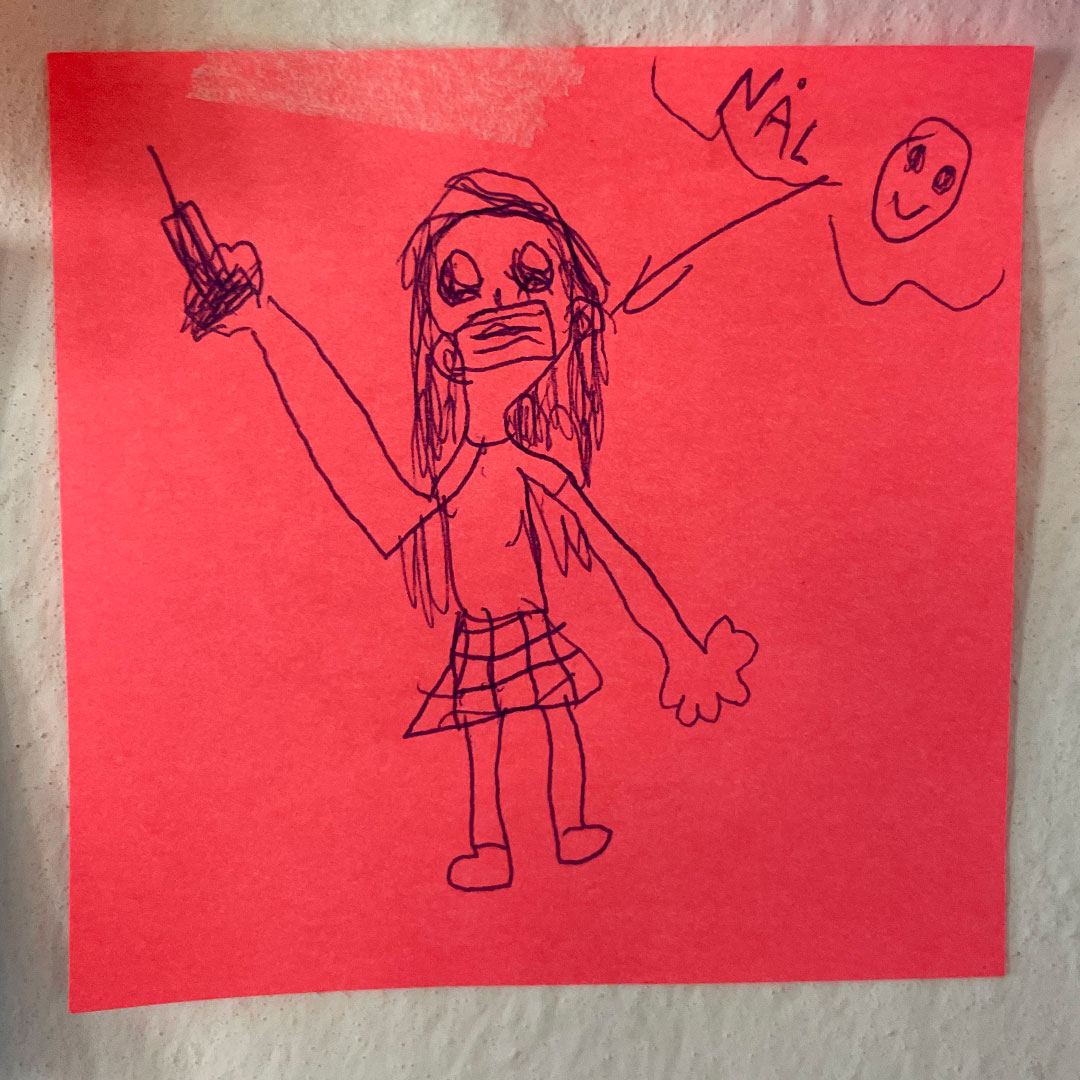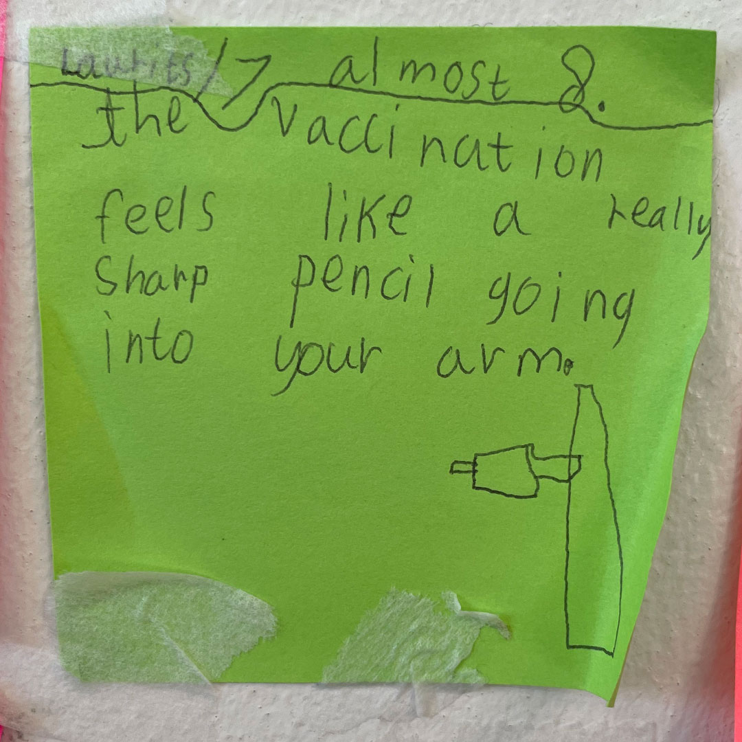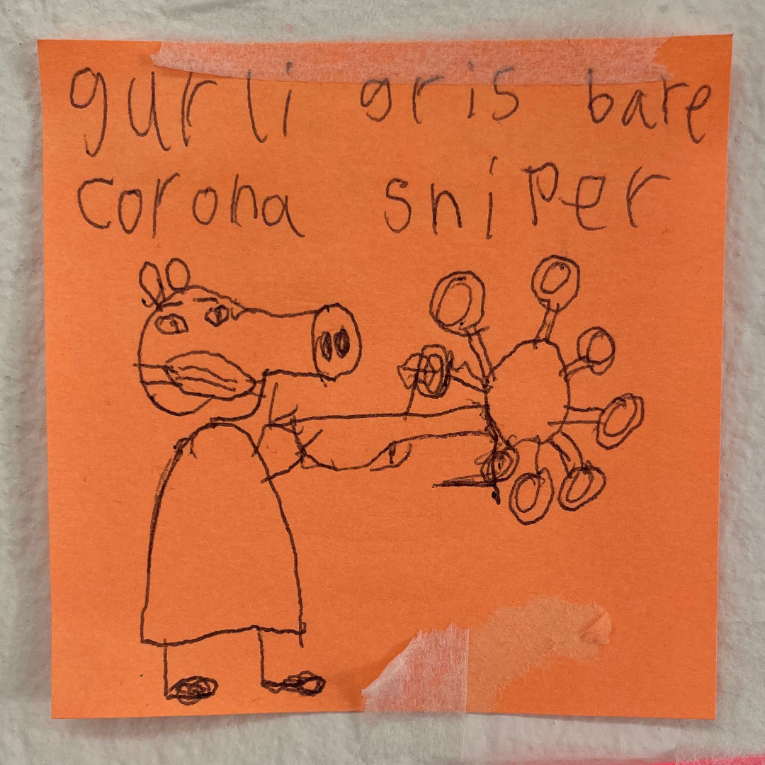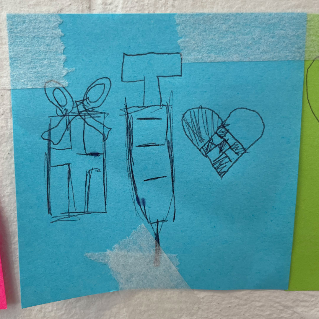 In the winter of 2021/2022 I did a stretch with covid vaccination, partly to experience it and partly to help. A good number of parents couldn’t get their children to relax before the shot and so we had the kids draw on little stickies – it helped. This is just a tiny part of the thousands and thousands of drawings.