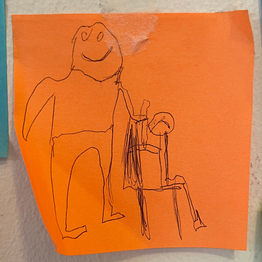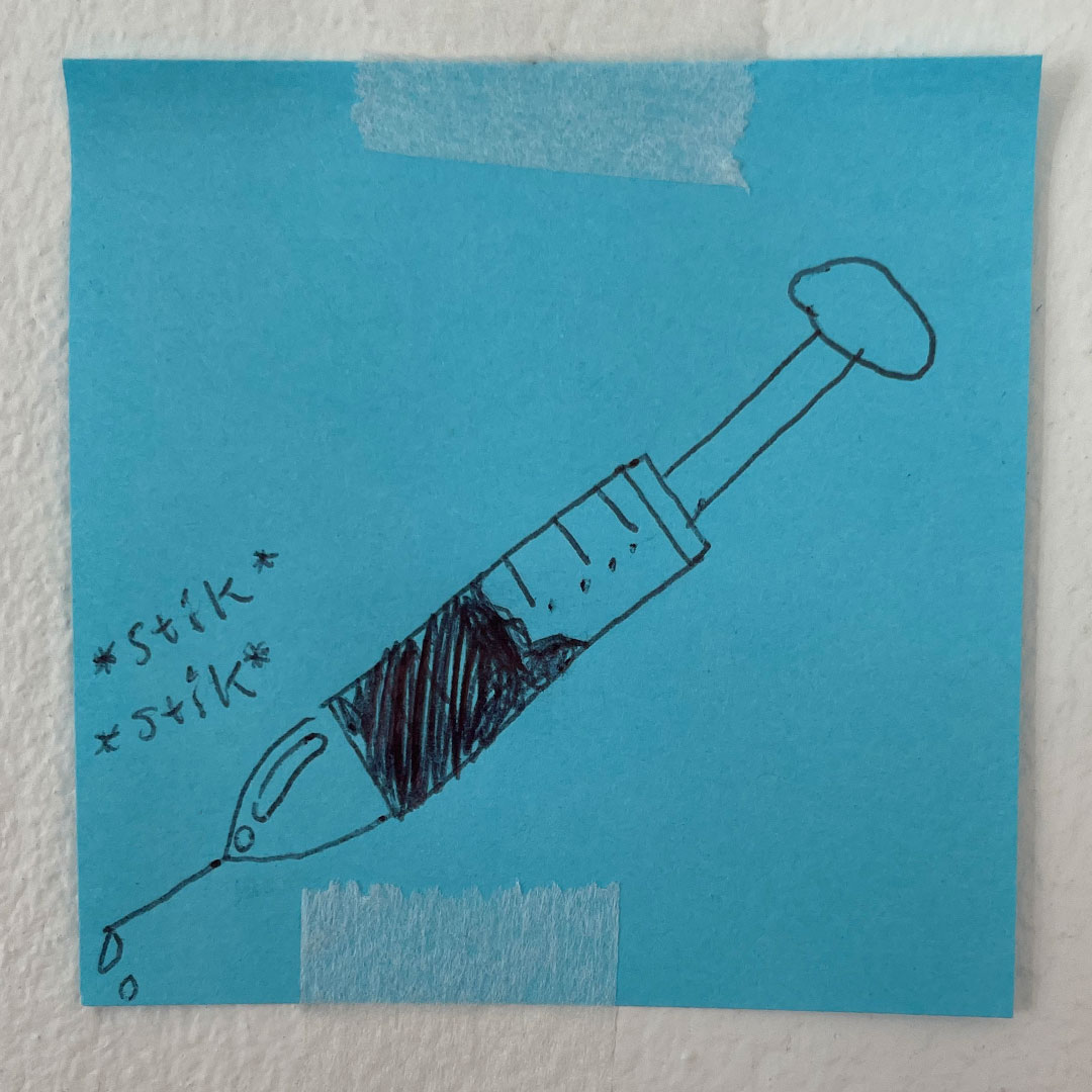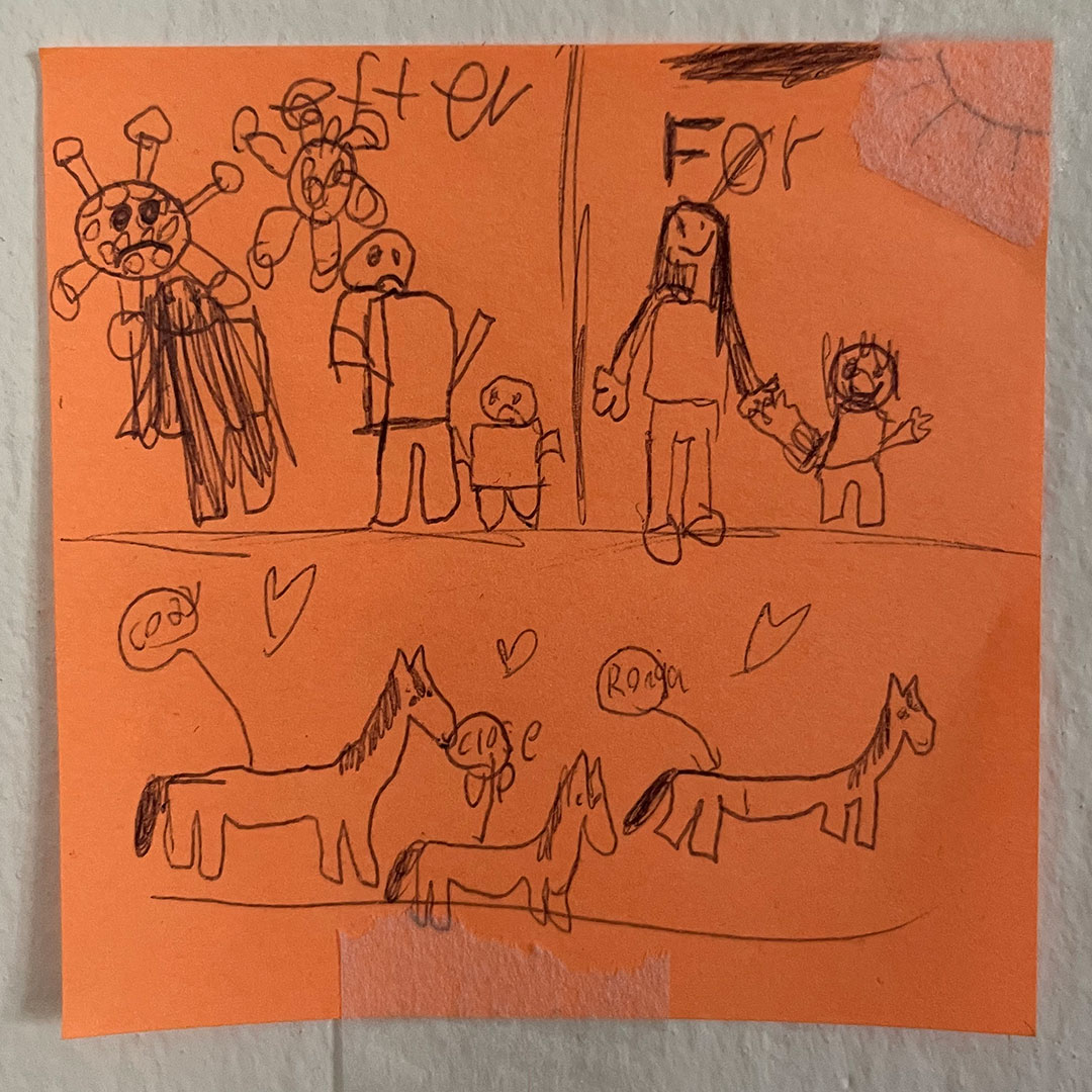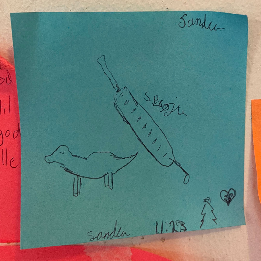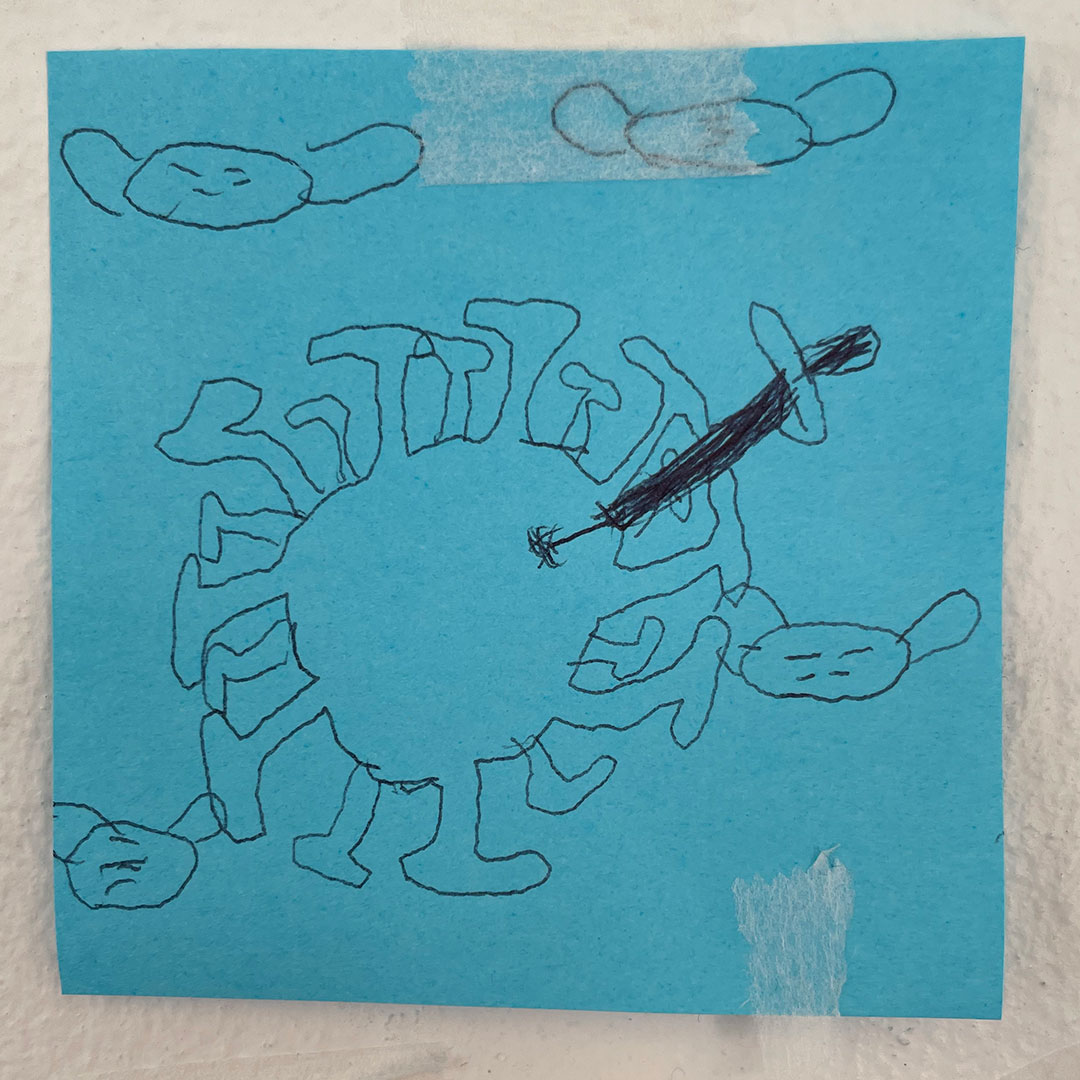 In the winter of 2021/2022 I did a stretch with covid vaccination, partly to experience it and partly to help. A good number of parents couldn’t get their children to relax before the shot and so we had the kids draw on little stickies – it helped. This is just a tiny part of the thousands and thousands of drawings.